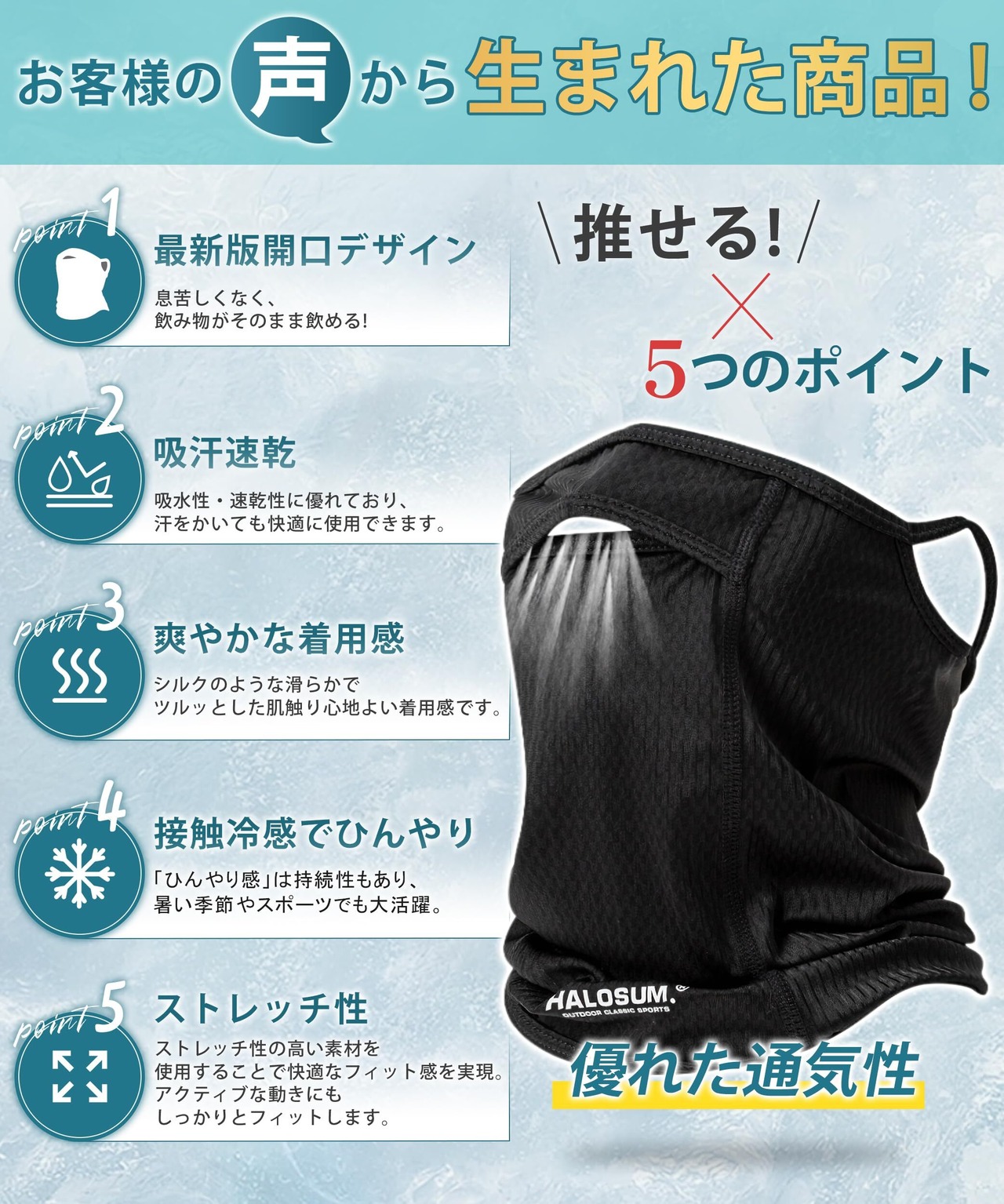 [Andeor] 【新開口デザイン】フェイスカバー ネックガード 夏用【爽やかな着心地・紫外線防止UPF50+】 ネックウォーマー uvカット 耳かけ 日焼け防止 接触冷感 呼吸しやすい アウトドア 自転車 ランニング 登山 釣り