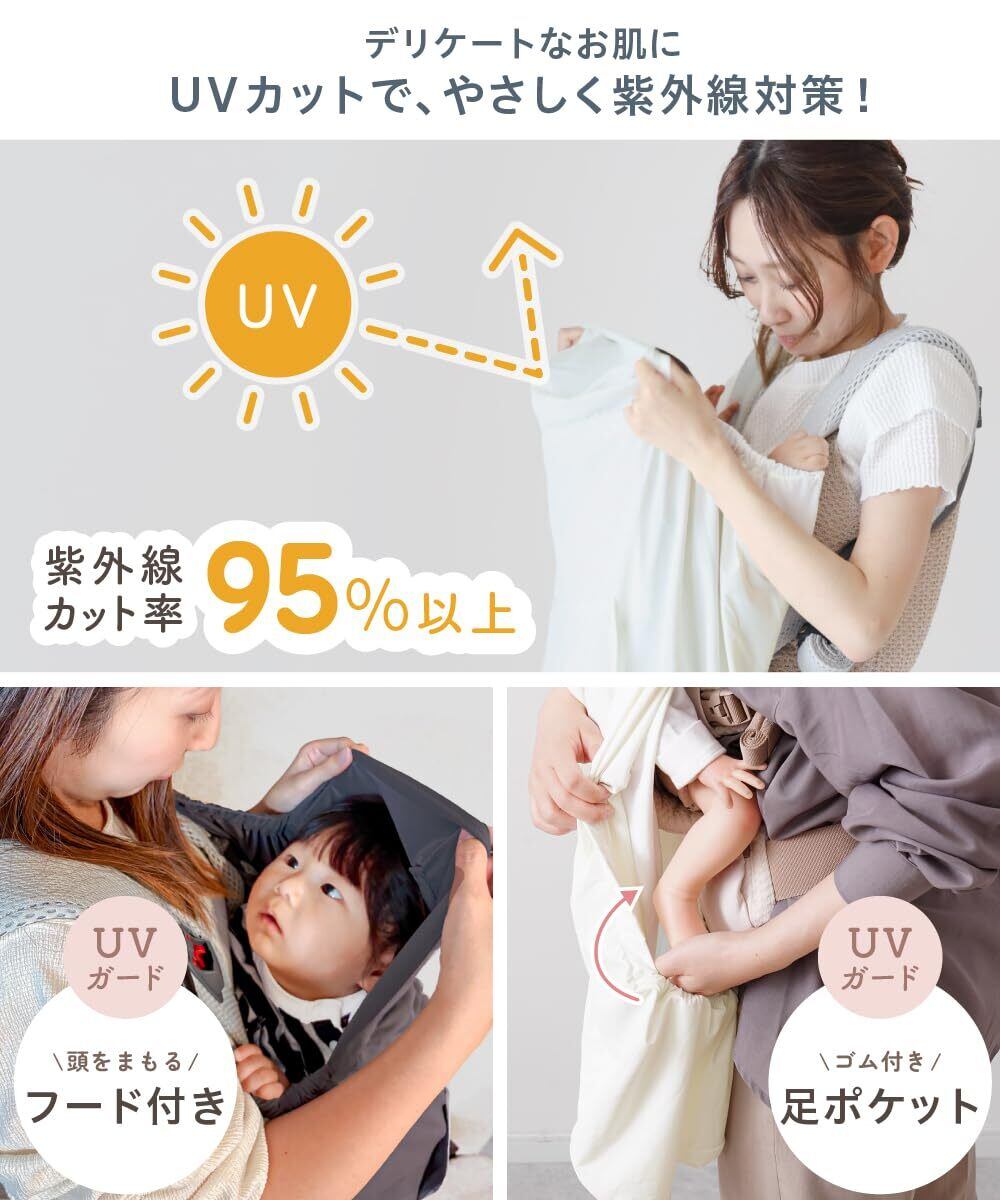 【UVカット95%以上!】UVカット率95%以上を誇る生地で、紫外線をしっかりブロック。デリケートな赤ちゃんのお肌を、真夏の強い日差しから守ります。