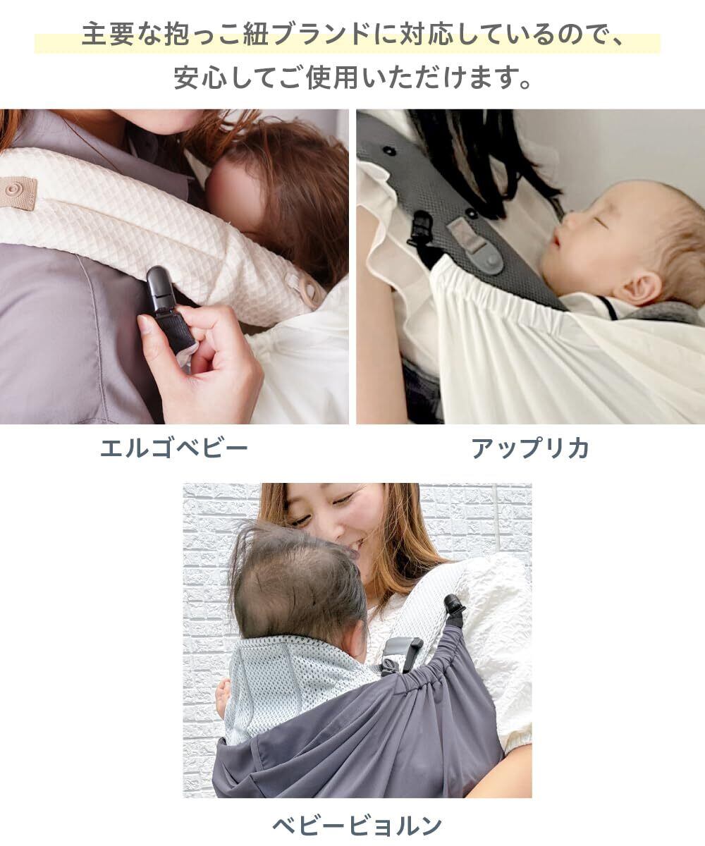 【ゴムで伸びるワンタッチクリップ】ワンタッチで簡単に装着できるクリップは、さまざまな抱っこ紐やベビーカーに対応。滑り止め付きでズレにくく、快適です。