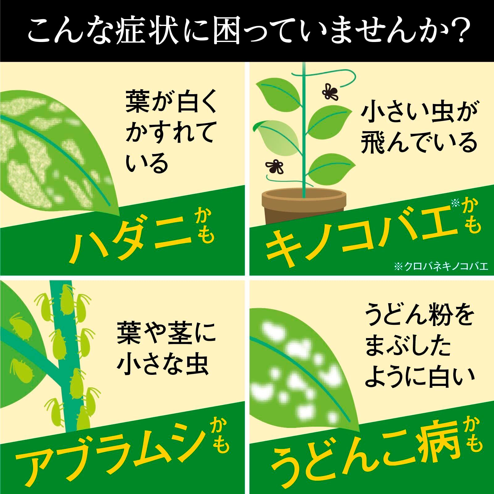 ※病気の発生と進行を防ぎます。一度被害にあった葉はもとのキレイな状態には戻りません。