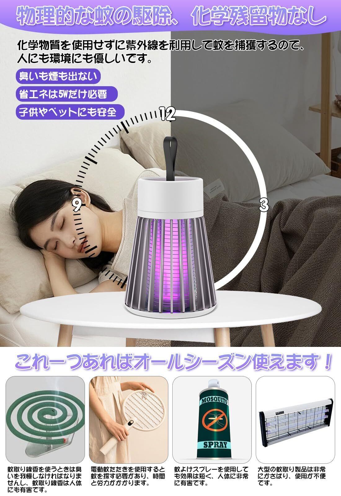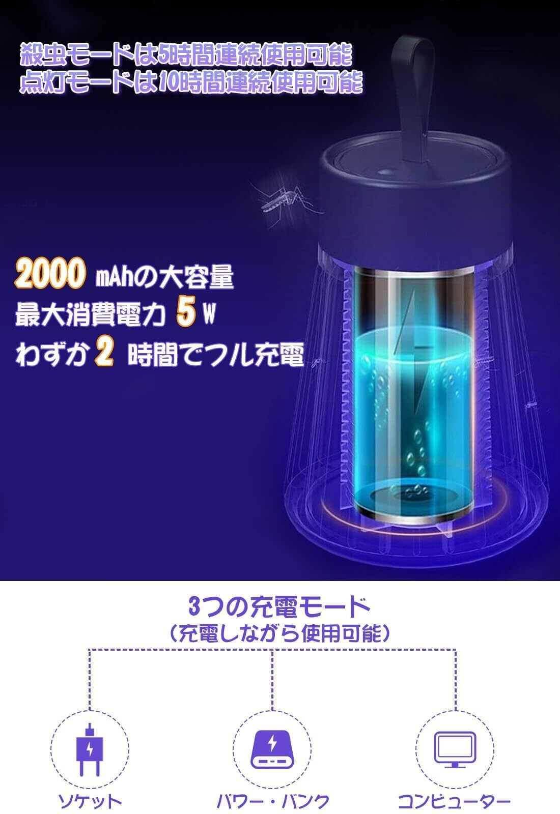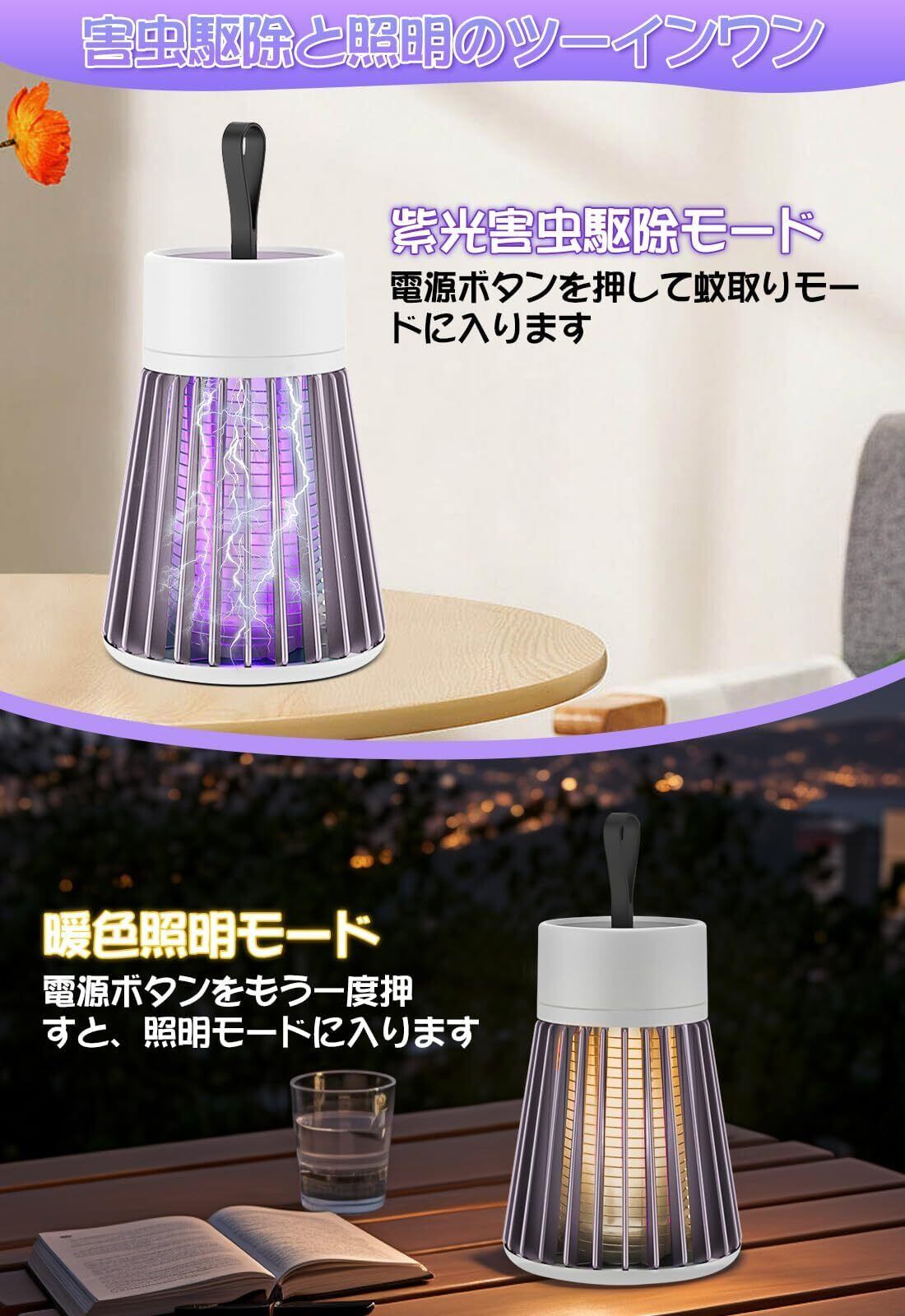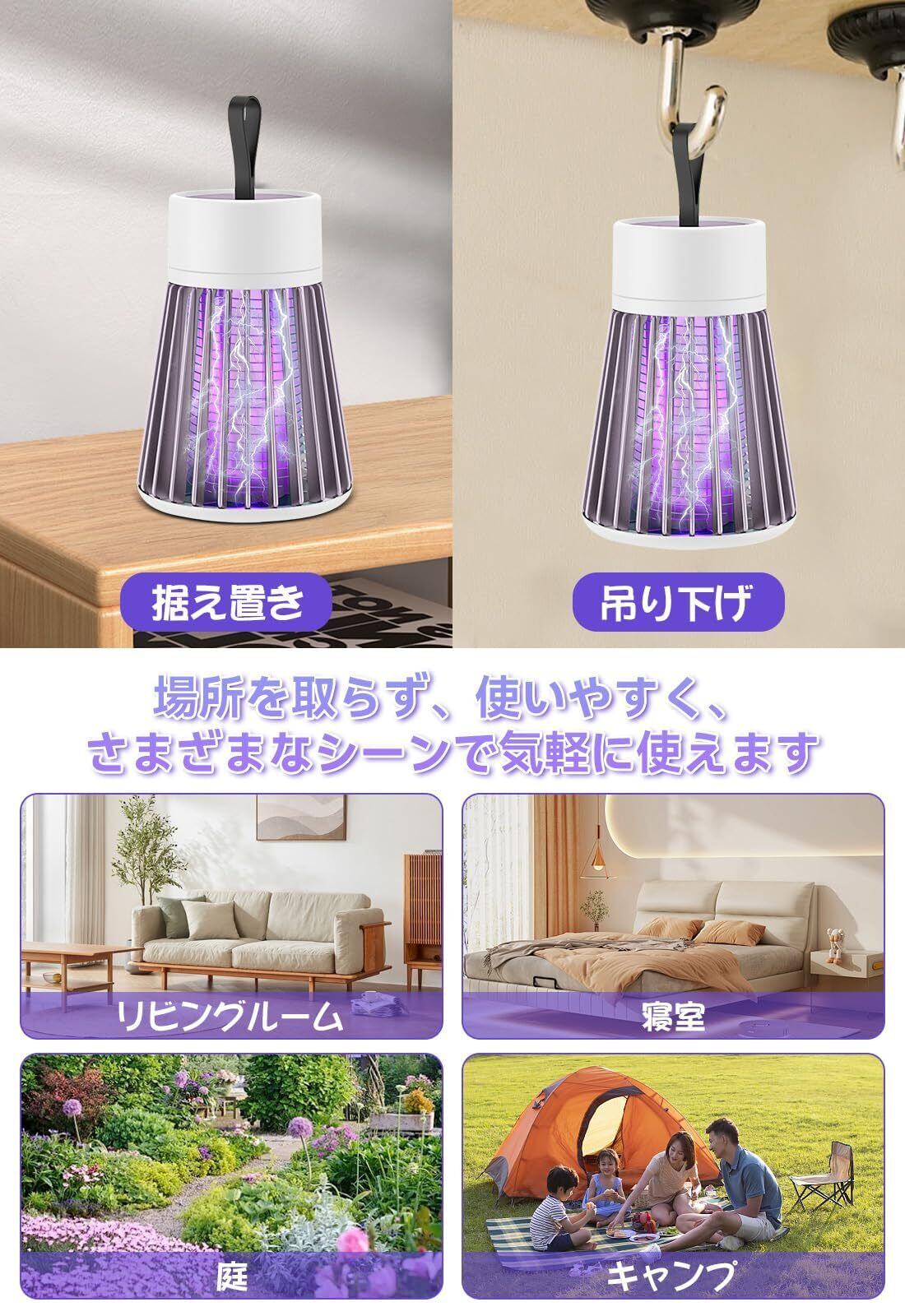 電撃殺虫器 コバエ取り 蚊取り【2025年夏最新強化版】 LAOSEP 人気版 殺虫灯 LED誘虫灯 360°強力蚊除け USB充電 LEDランプ照明 静音設計 省エネと経済 超長待機 人体無害 コバエ対策 蚊虫対策 室内 室外 吊り下げ式&据え置き式両用 台所/寝室/居間/オフィス/飲食店/キャンプ/登山/夜釣りなどに適用