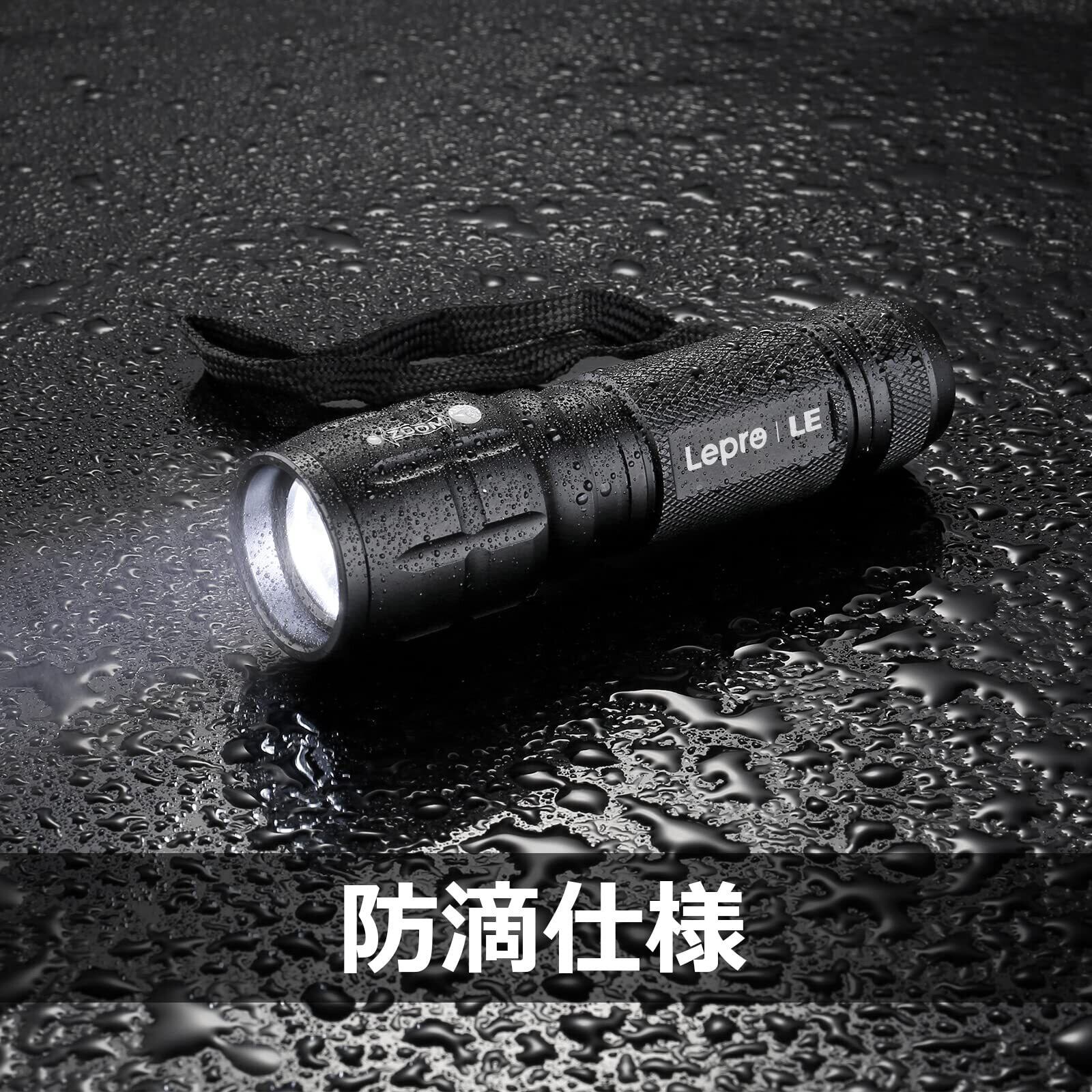 【防滴仕様】防水等級IP44のため、日常生活の雨水などによる水滴の付着や飛沫程度なら、懐中電灯本体に悪影響なく耐えることができます。夜に自転車、散歩、キャンプ、アウトドア時に突然の雨が降りだしても心配はありません。