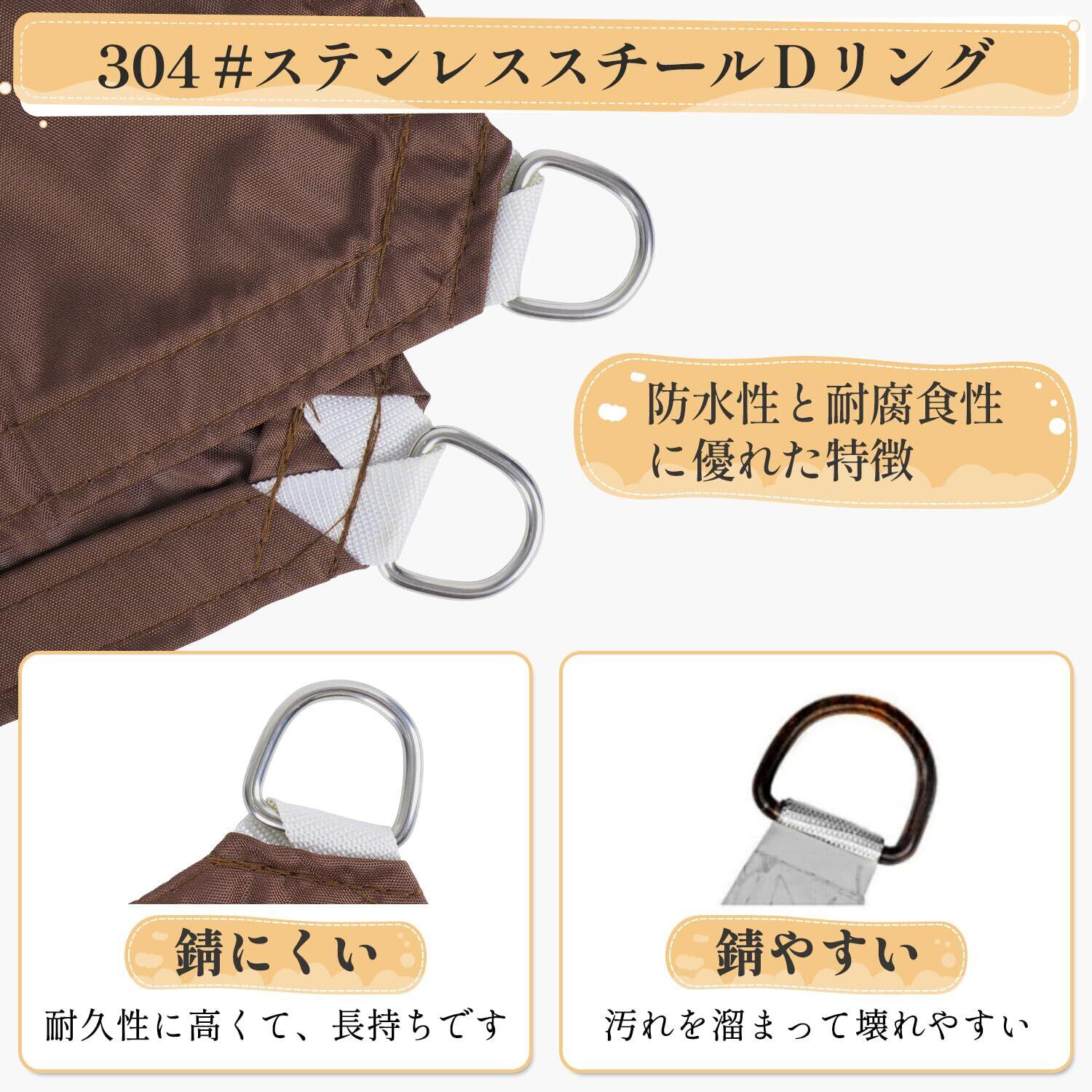 【撥水 サンシェード】市販の300D素材より、はもっと高密度400Dポリエステルを採用して、裏面に2層撥水PU塗装して、れた撥水効果のシェードです。突然の雨にも大丈夫で傘のように雨水を弾くので、夕立ちなど急に雨が降ってきた場合でも、雨よけになり濡れずに安心です。外出していても洗濯干し場にサンシェードを付けておけば、外出時に急に雨が降ってきても洗濯物が濡れずに済みます。「PS:風や強風の時でのご使用はお避け下さい。」