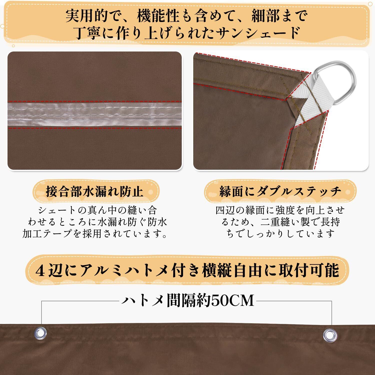 XiaZ 日除けシェード 2×3M 撥水防水 2層加工 雨よけ/サンシェード/オーニング 400Dポリエステル 強度UP PU塗装 接合部水漏れ防止 紫外線UVカット 遮光 遮熱 目隠し ベランダ バルコニー 庭用タープ/屋外/庭先/クールシェード/廊下/庭下/デッキ /キャンプ /野外活動対応 簡単設置 固定ロープ 付属 モカ色 | KSショップ