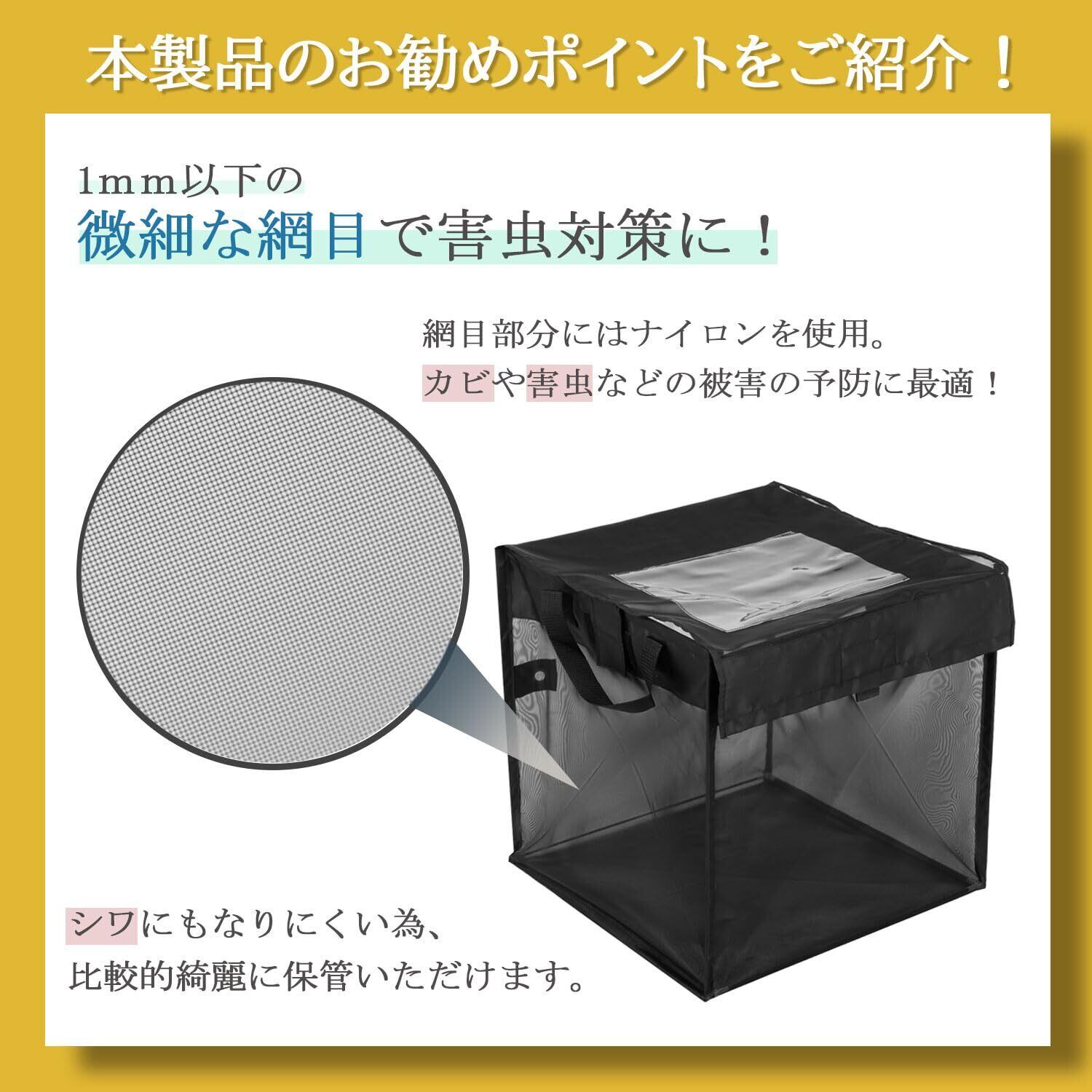 【使用素材は強度抜群】 ゴミ出しは毎週、種類によっては毎日のように外に出して使用するごみステーションボックスになります。 長くご使用いただく為にも、シート部分にはPVCレザーを使用。 伸縮性と撥水性に優れており、何度折り畳みしても畳みシワがつきにくく、雨の日でも 安心して継続的にご使用いただけます。 また、網目は約1mm以下のメッシュ形状で細かく、小さな虫の侵入や、鳥のクチバシも入らないのでより安心してご使用いただけます。