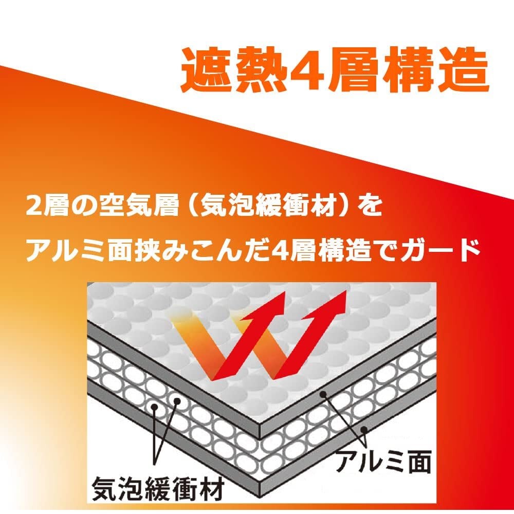 特徴:表面のアルミ反射素材により約40%の熱線をカット。さらに2層の空気層(気泡緩衝材)を中間層に採用。裏面もアルミ反射素材で計4層の遮熱断熱構造で熱をエアコン室外機に伝えにくくなっております。 JIS規格の冷房負荷試験条件は43℃となっています。つまり日本のエアコン各社は外気温が43度まではしているということになります。 43℃を超えるとエアコン内の電子部品の熱が規格値をオーバーする場合があり、多くのメーカーで冷房能力が落ちるようです。猛暑時にエアコンの効きが悪くなる原因の一つとされています。 猛暑で直射日光が当たる場所の温度が40℃を超える日が増えると予想される中、エアコンの効きが悪くなる前、室外機の調子が悪くなる前に室外機にカバーをして直射日光を防ぐことをオススメします。 風に強いしっかり固定ベルト採用。マグネット式、シール式、上部表面にベルトが出てないスッキリベルト式に比べ雨や風に強い構造となっています。ベルト穴にはハトメがありますので風による破損にも強い構造となっています。