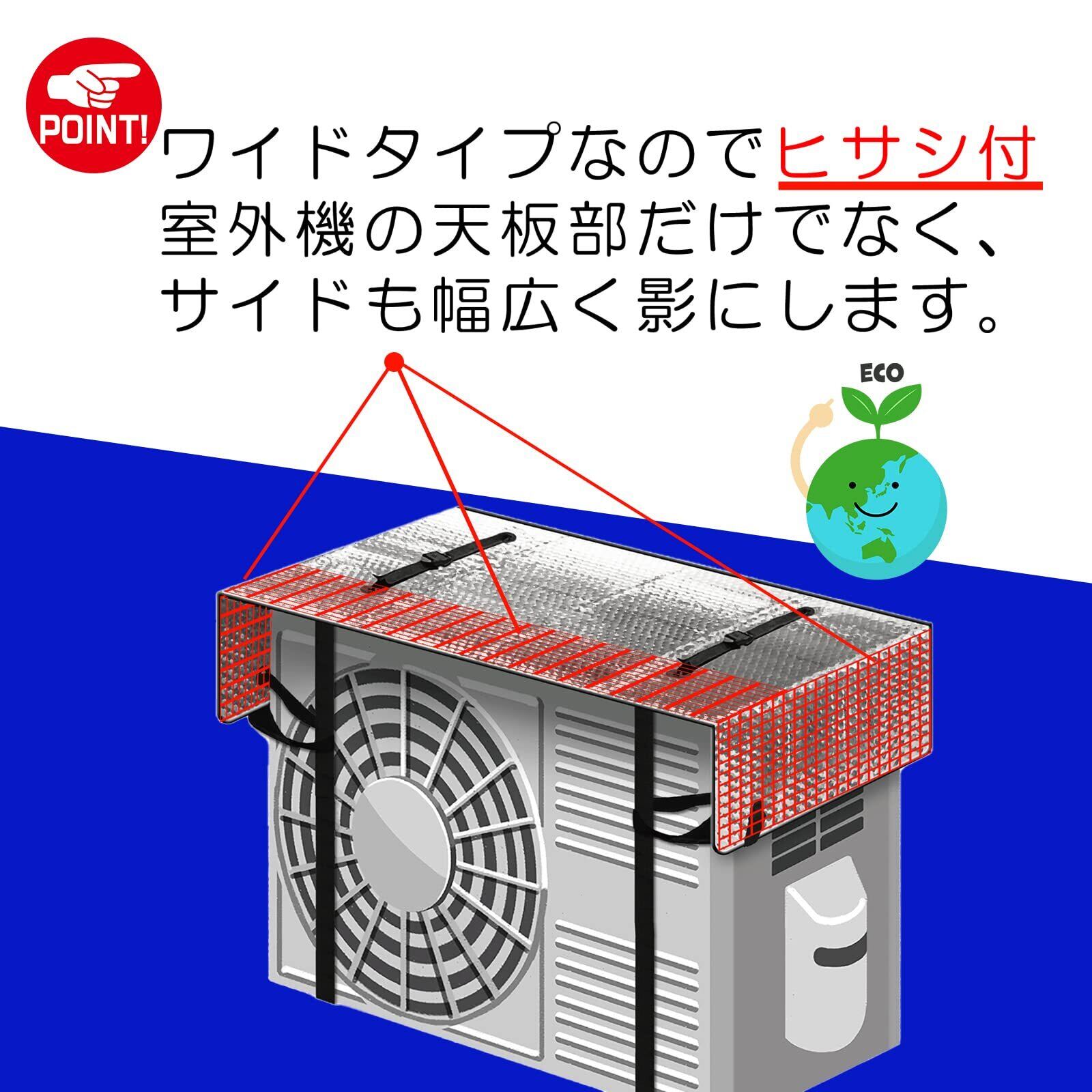 [NISYO] ハイグレード エアコン 室外機カバー 遮熱シート 日よけパネル アルミ ヒサシ付 ワイドタイプ エアコンカバー 省エネ 節電 室外機の故障予防 ベルト式