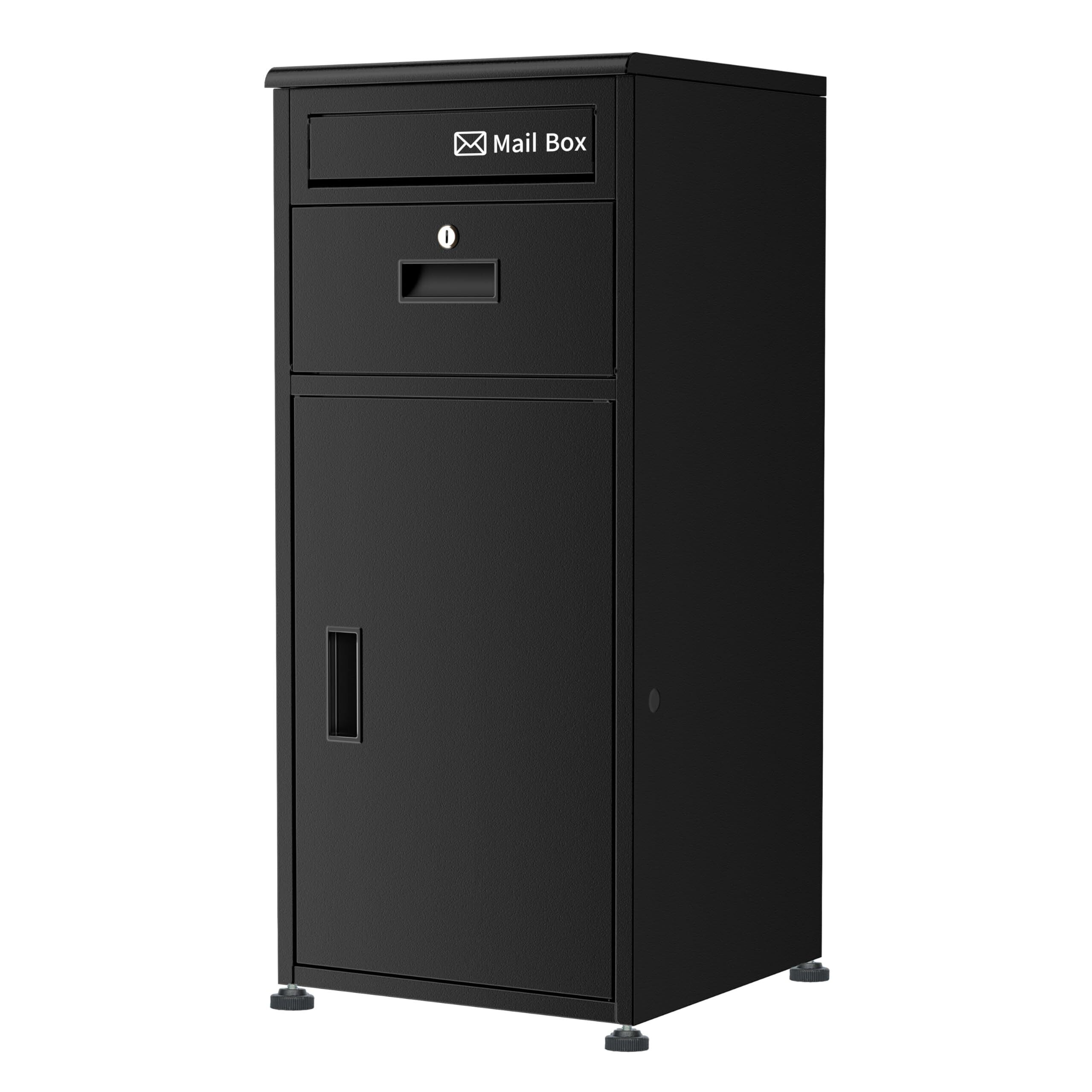 【日本企業】宅配ボックス 宅配BOX 136L大容量 防水 複数投函可能 組立不要 両開き 日本語説明書 2年 盗難防止 郵便受け ポスト付き 屋外 戸建て用 (ブラック)