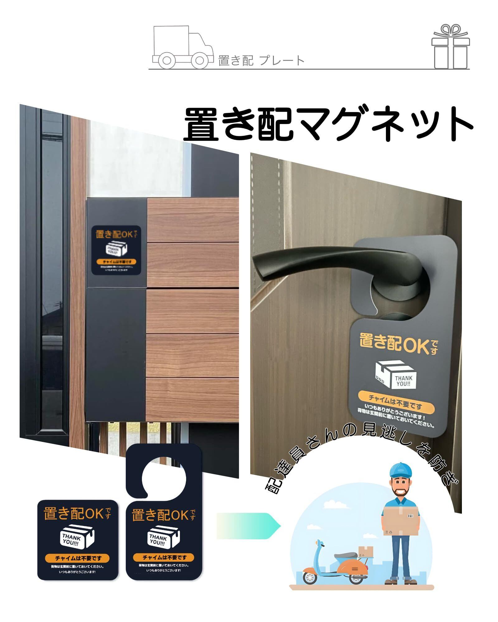 【超耐久性!】置き配 ステッカー 屋外耐久年数は3~5年もあり、特殊加工で雨にも強い。プレートはしっかり挟むので風にも強いです。