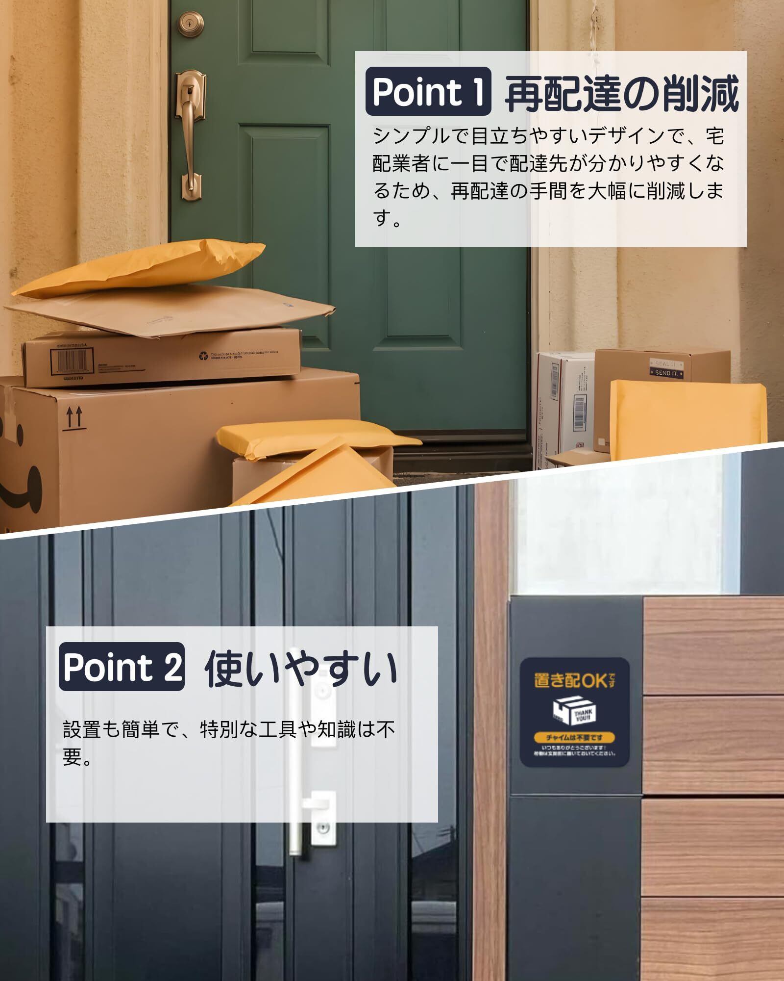【配達時にチャイムは不要です】置き配 ステッカー これを玄関前や宅配ボックスに貼り付けることで、配送員の負担を効果的に軽減し、再配達の回数を減らすことができます。