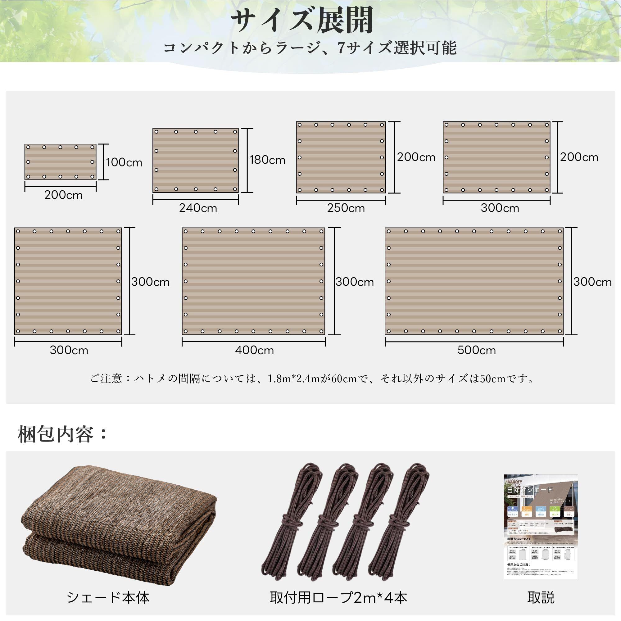 DANOFY 日除け シェード サンシェード 2m×2.5m - 日よけシェード 屋外 ベランダ 庭 バルコニー メッシュ オーニング 遮光 遮熱 目隠し 風通し UVカット 日除けシート モカ色 | KSショップ