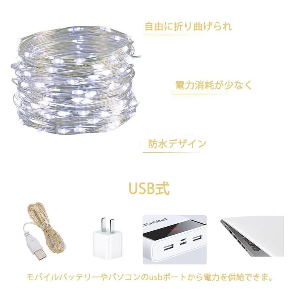 LEDイルミネーションライト USB式 ストリングライト 銅線 ワイヤーライト 10M 100球 室内 屋外 ハロウィン クリスマス 誕生日 ガーデンライト (USB式, ホワイト)