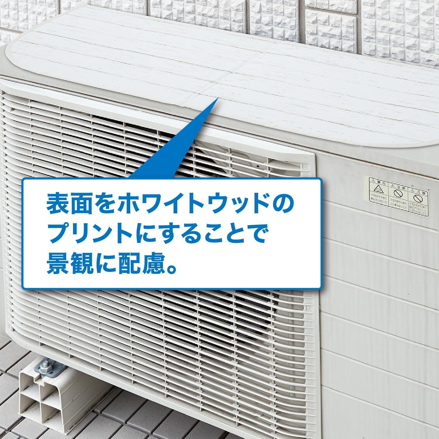 アール(R) マグネット式室外機用遮熱カバー 室外機カバー まど活 ホワイトウッド 85×35×0.3(cm) マグネット式 遮熱 取り外し可能 HN-092‐Q