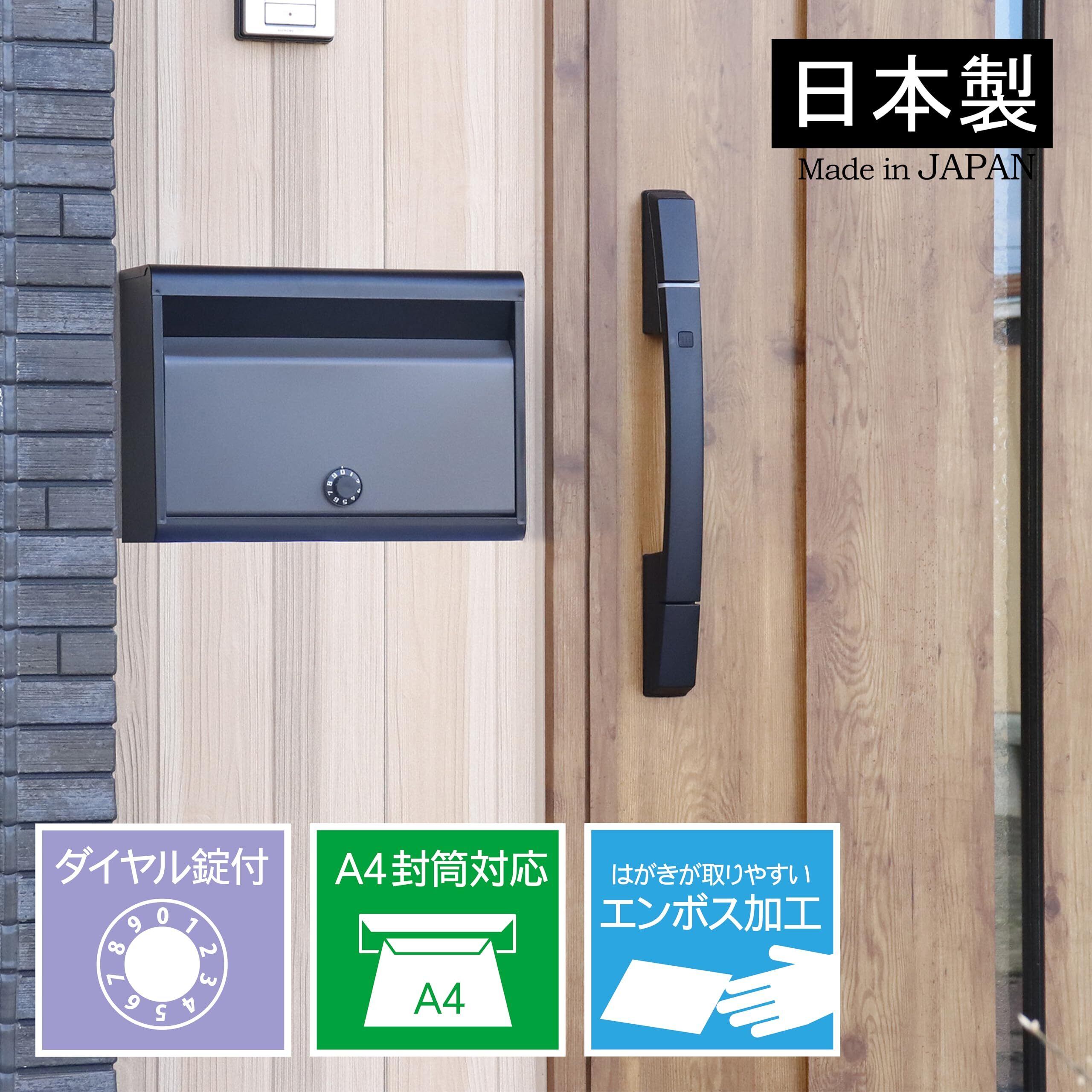 グリーンライフ(GREEN LIFE) ポスト 壁掛け【日本製】 スチール製 A4サイズ対応 ダイヤル錠 ブラック×アッシュグレー FH-50D(BK/AGY)