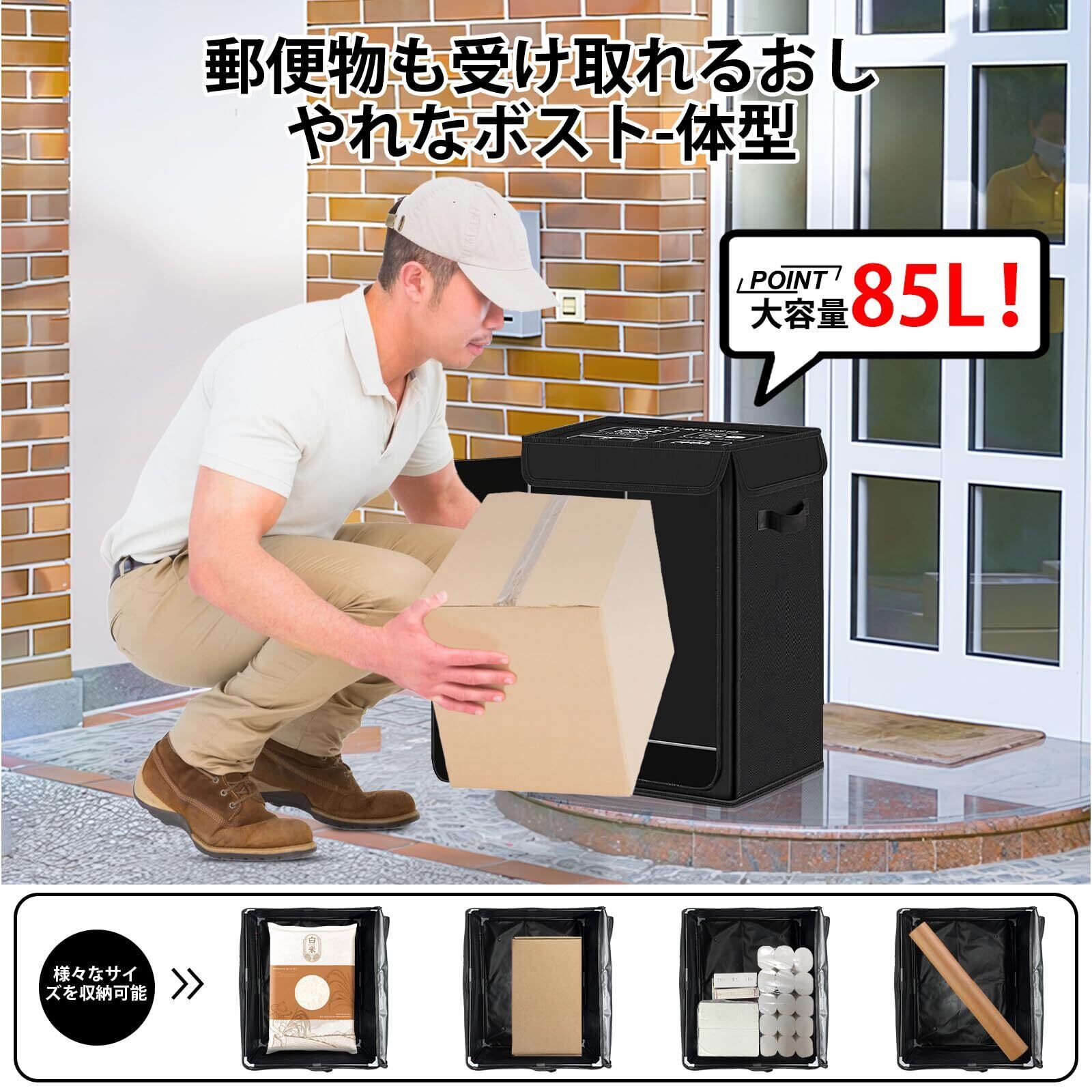 宅配ボックス85L 増大版 宅配BOX 戸建て用 折りたたみ 宅配便ボックス 置き配 収納ボックス 防水 屋外 大容量 組み立て不要 盗難防止 郵便受け チャコールブラック