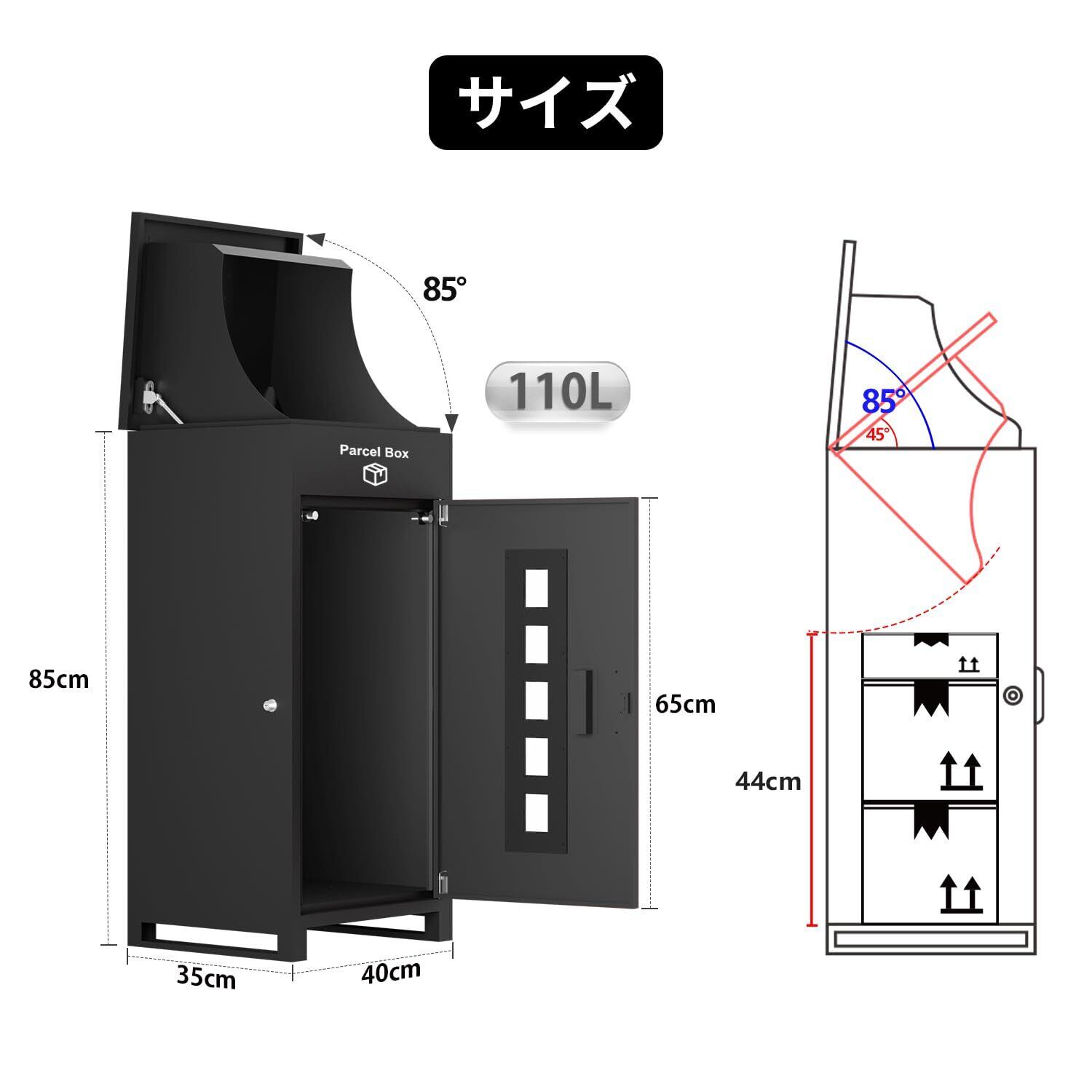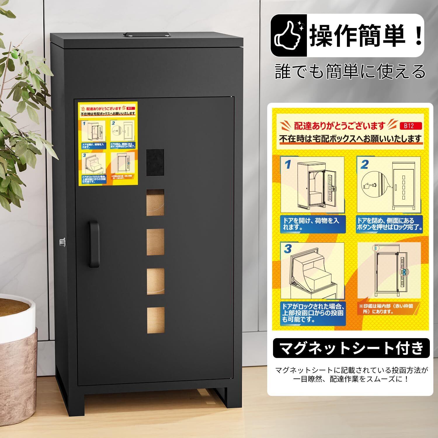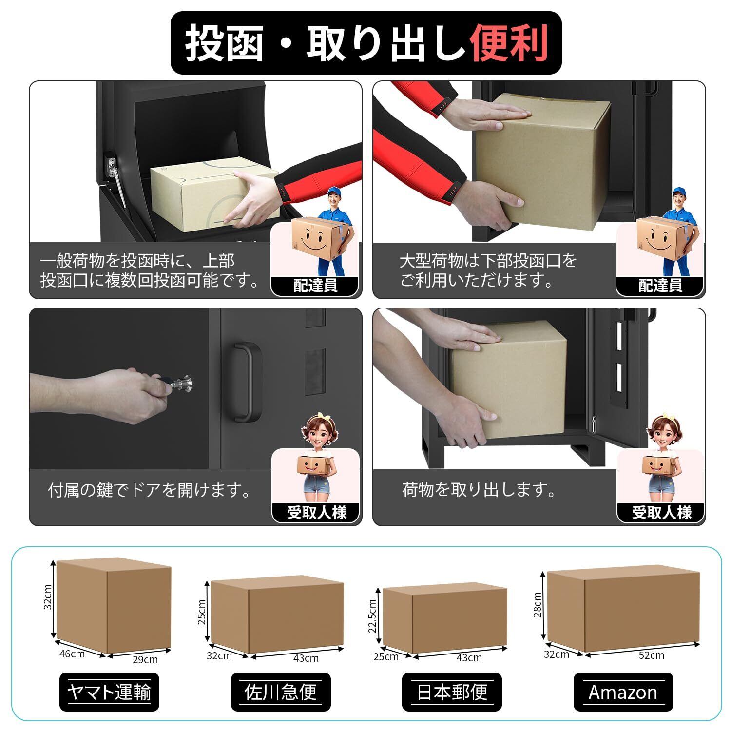 【複数投函可能/大容量】 VARNIC 宅配ボックス 組み立て不要 宅配BOX 防水 屋外 大容量 置き配 宅配便ボックス 大型 盗難防止 両開扉 戸建て用 個人宅 (ブラック)
