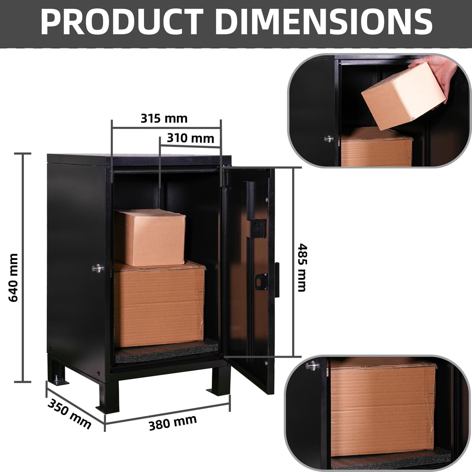 【多用途】宅配ボックスは38*35*64cmの大きなサイズで、速達、小型・標準小包、手紙、新聞、雑誌、ハガキなどに適しています。便利で実用的、多機能です。宅配ボックスには最大33×22×30cmの大きさの荷物が入ります。