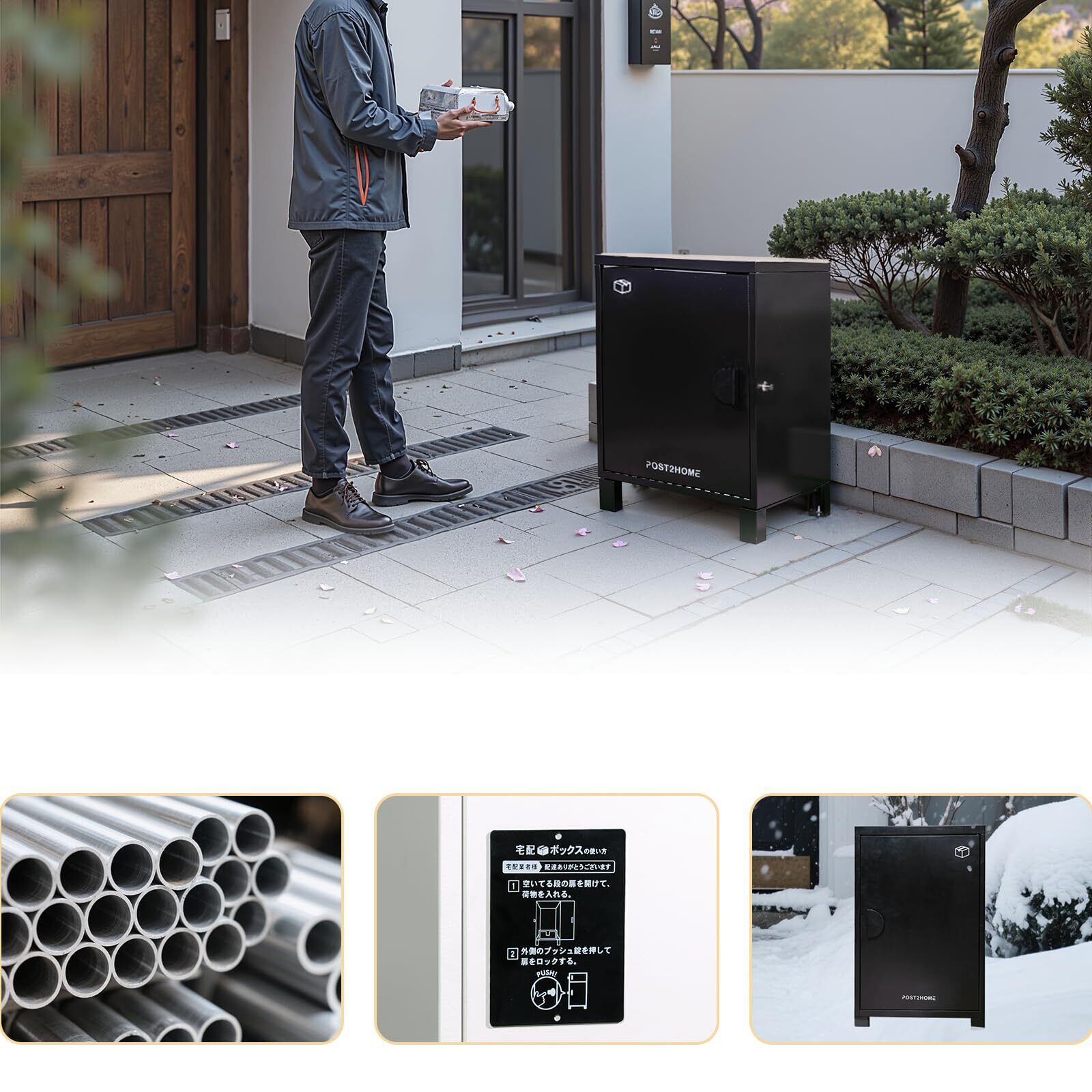 POST2HOME 宅配ボックス 屋外 防水 組み立て式 郵便受け 置き配 ステッカー 宅配ボックス 簡単設置 盗難防止 荷物を保護 (黒)