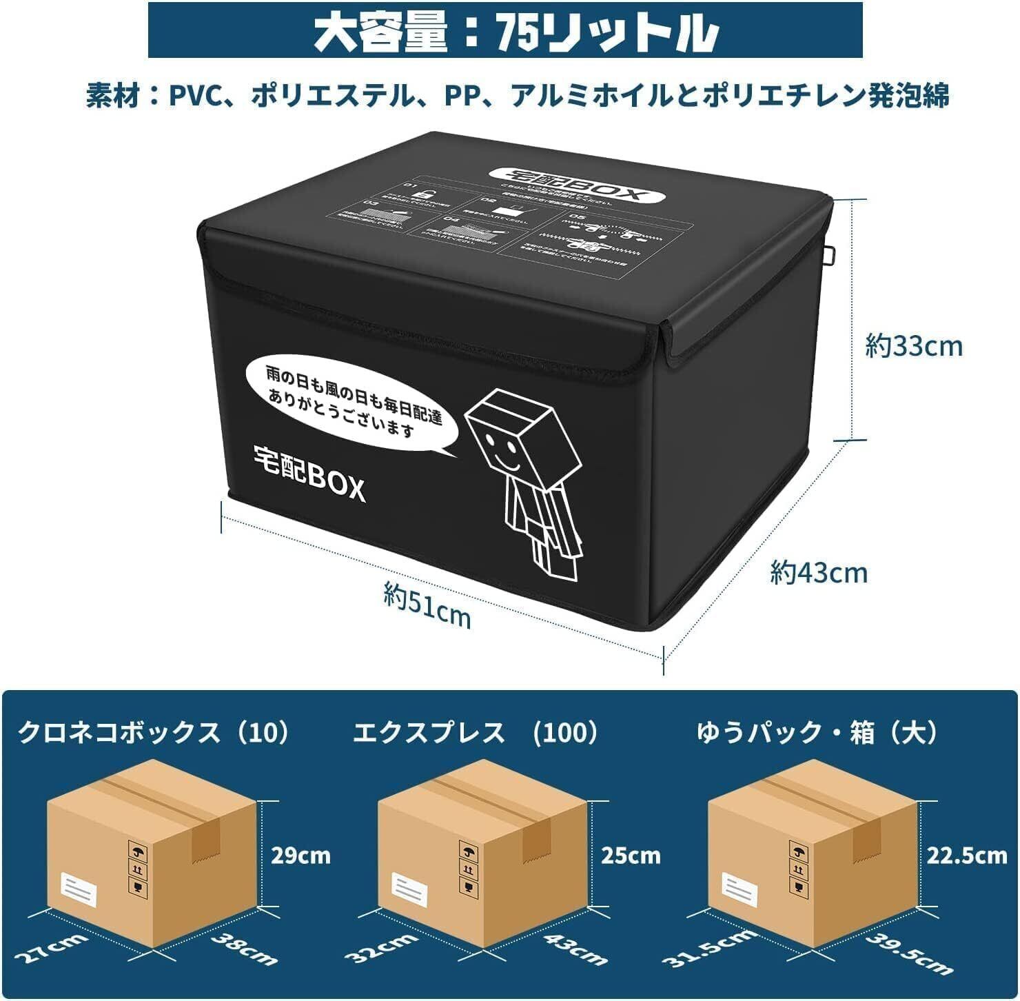 Probasto 宅配ボックス 置き型 掛け型両用 配達ボックス 防水 保冷 大容量 75リットル 折りたたみ式 印鑑ポケット 盗難防止 防水 宅配用ボックス 盗難防止ワイヤー Sフック 南京錠 ダイヤル錠付き 宅配BOX 個人宅(ブラック)