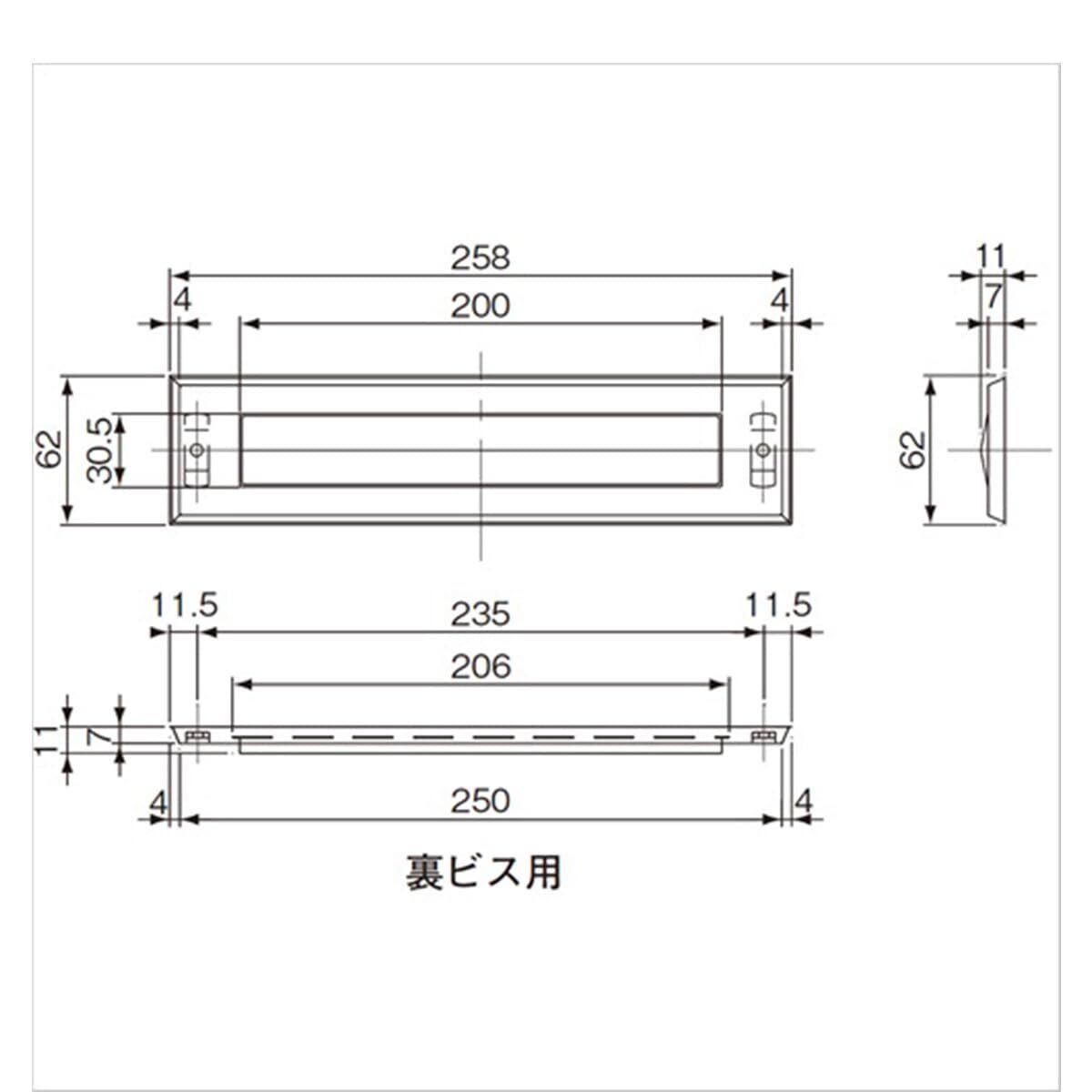 ステンレス製でさびにくく、郵便物差入口にご使用いただけます。裏ビス用です。