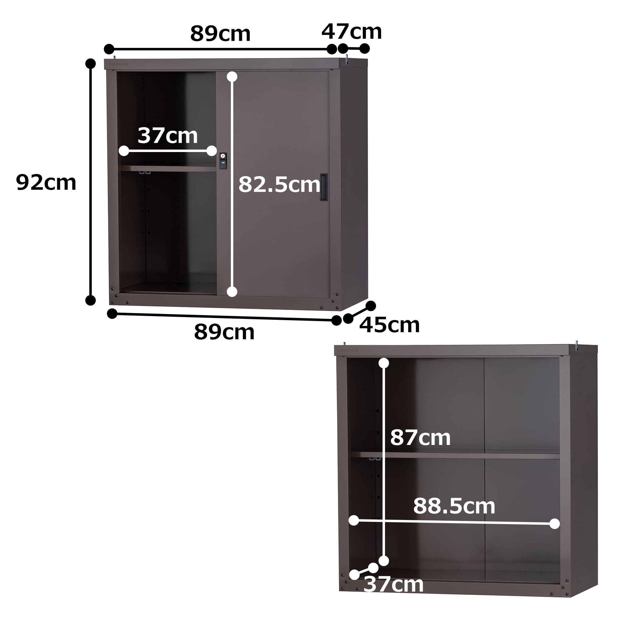 グリーンライフ 物置 収納庫 屋外 小型 【日本製】棚板1枚・鍵付き(幅89×奥行47×高さ92cm)オールブラウン サビに強い 調整可能な可動棚 HS-92(AMBR)