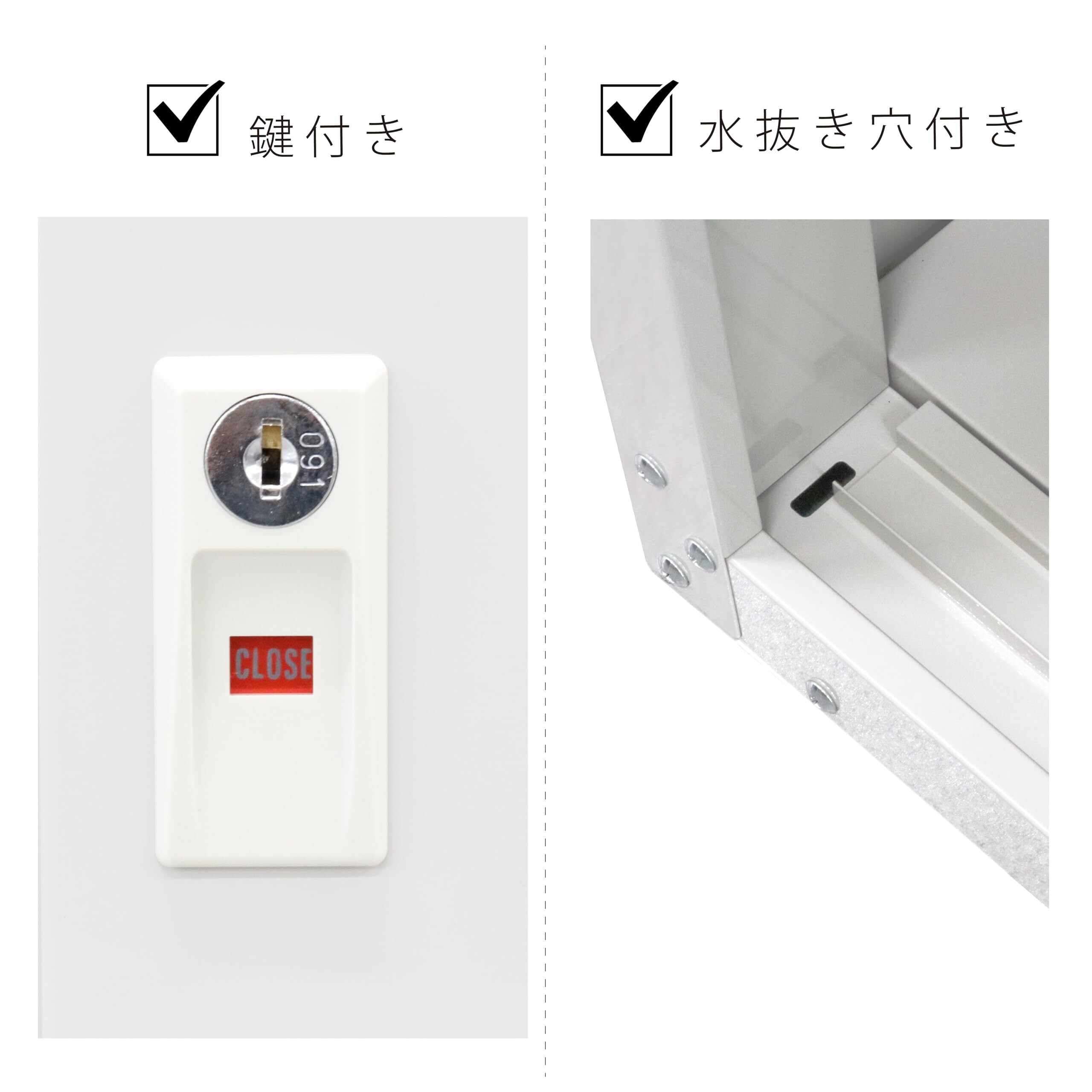 ●付属品:棚板1枚、鍵2本、転倒防止金具、取扱説明書。