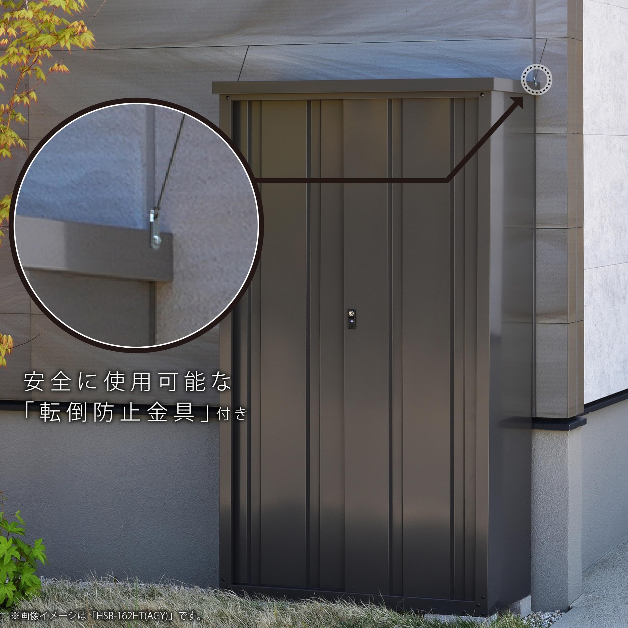 ●転倒防止金具付(ワイヤーは別売り)。