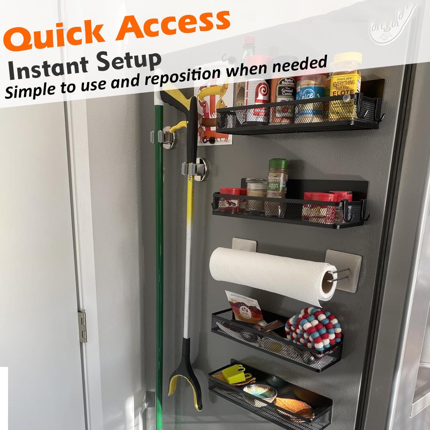 万能なユニバーサルモップホルダー:パッケージは美しく作られており、完全な製品が含まれており、壁と冷蔵庫の間で散らかったり、倒れて届きにくくなったりする機能を備えています。 素敵で整理整頓。