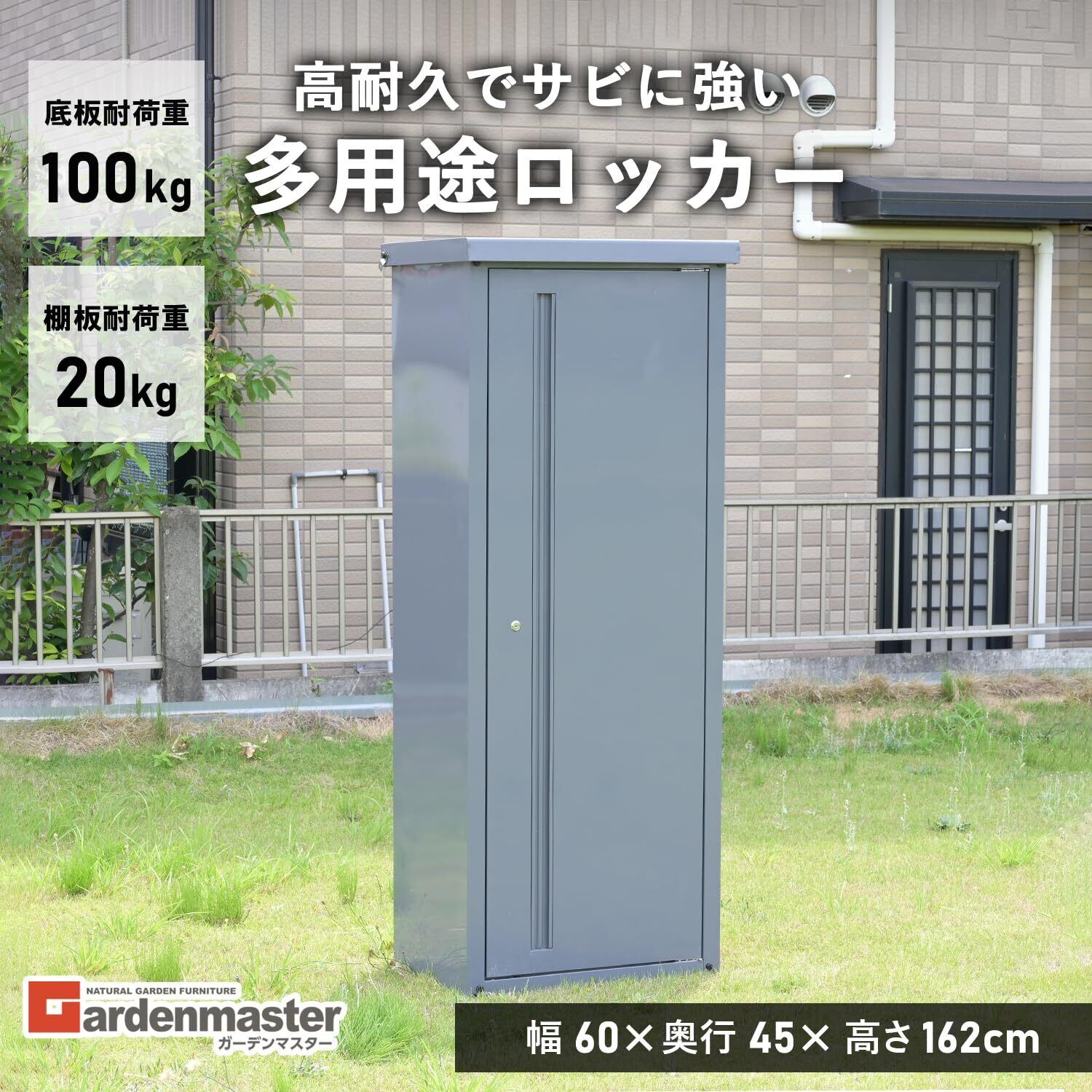 ガーデンマスター(Gardenmaster) 物置 屋外 収納庫 幅60×奥行45×高さ162cm 多用途 収納庫 倉庫 屋外 大型 ロッカー 縦長 片開き 鍵付き 可動棚板付き ISM-600 限定グレー | KSショップ