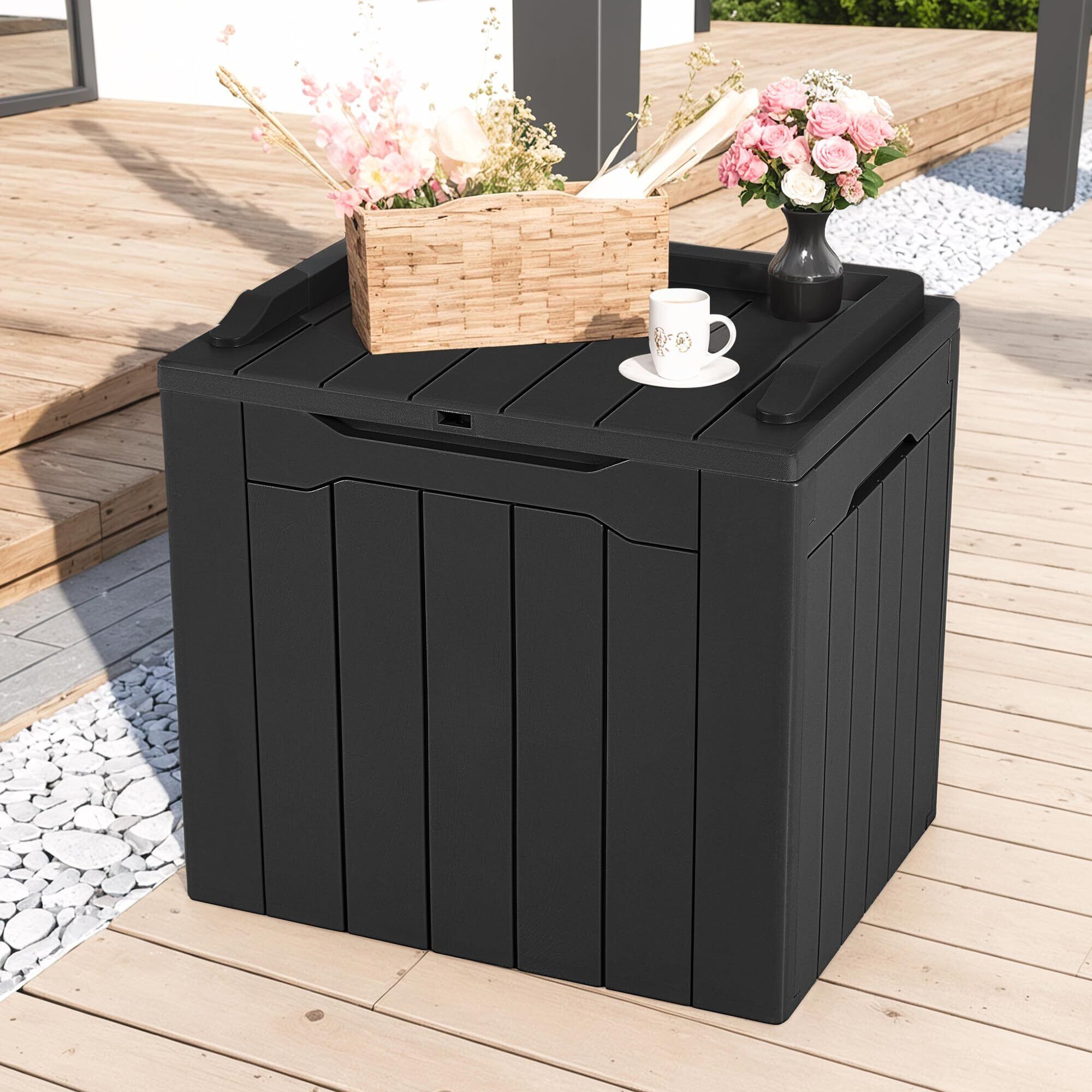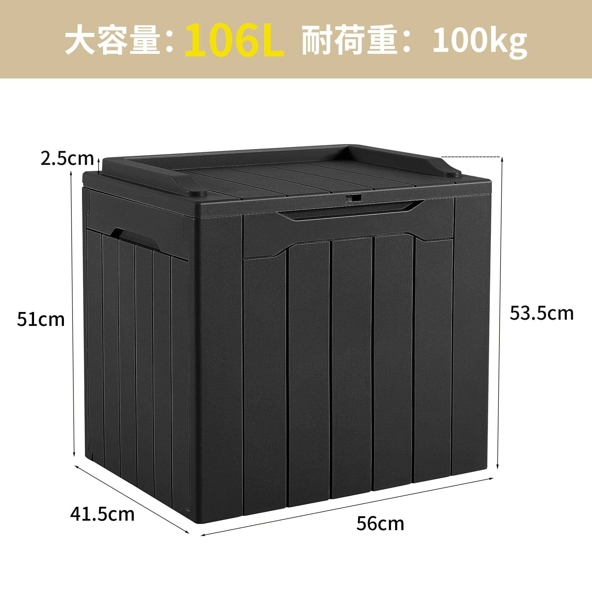 HOMECO 物置 収納庫 106L 大容量 幅56*奥行き41.5*高さ53.5cm 倉庫 屋外収納庫 ベンチストッカー ベランダ収納 アウトドア収納 おしゃれ ブラック