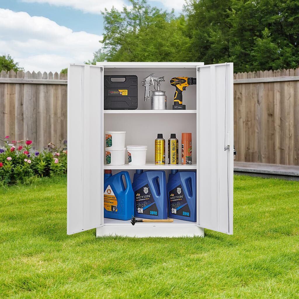 OSJ 物置 収納庫 スチール 書庫 鍵付き 完成品 折り畳み 組立不要 キャビネット 防水 防錆 ロッカー 両開きドア 屋外