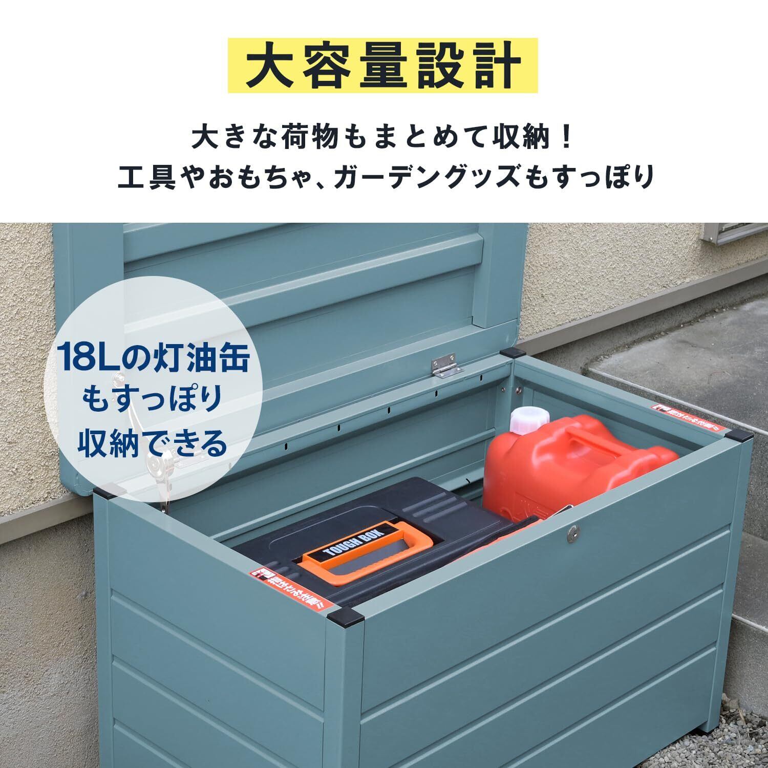 【特徴】ベランダやお庭での保管に便利なスチール製ストッカーです。カラーはクラウドブルーです。ハイテンション亜鉛メッキ鋼板は、有害物質が発生しない環境に配慮した粉体塗装仕上げです。衝撃に強くサビにくく、通常の冷延鋼板に比べ硬度が200%もアップしています。たっぷり入る大容量設計で、灯油缶18Lが3本保管可能です。ガーデングッズ・おもちゃ・工具箱など様々なものが収納でき、ベランダやお庭での保管に便利にお使いいただけます。天板耐荷重100㎏と丈夫なので、お庭のベンチとしても使えます。標準設備に鍵がついているので、防犯対策を気にされる方にもおすすめです(鍵:2本付き)。取付フック2個付き、開閉強度調節、フタを開閉しやすい取っ手付き、ガタ付きを調整できるアジャスターと、細部にまで使い勝手にこだわった機能を搭載しました。