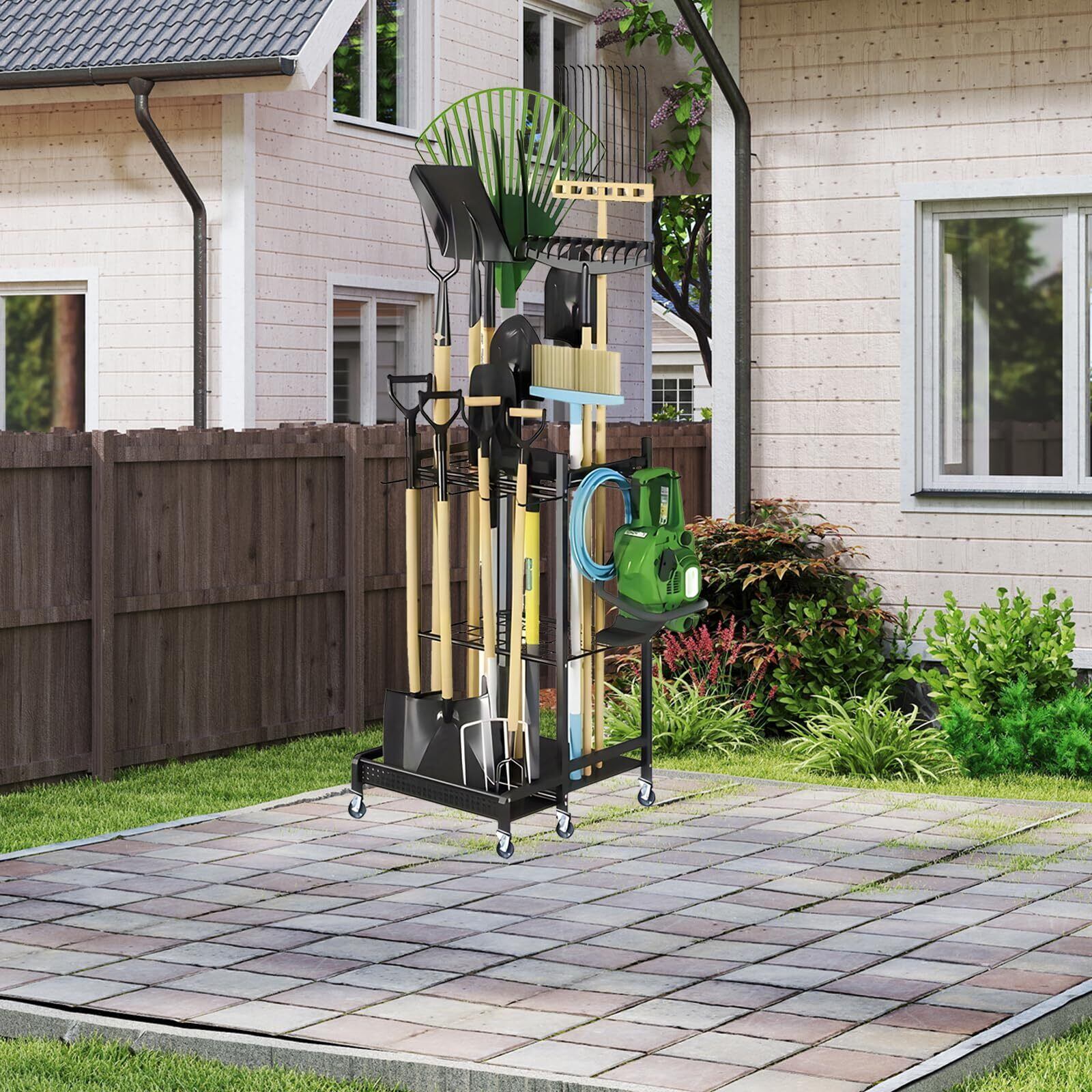 ガーデンツールオーガナイザー 農具収納ガーデン 庭ツールタワーラック ガーデニング 棚 掃除用具 収納 ガーデンツール収納ラック ガーデンツール スコップ 収納 滑車 車輪付き 移動が簡単 収納便利 多機能倉庫 収納ラック 家庭用屋外屋内使用に最適 49.7*42.9*77.9cm (ブラック) | KSショップ