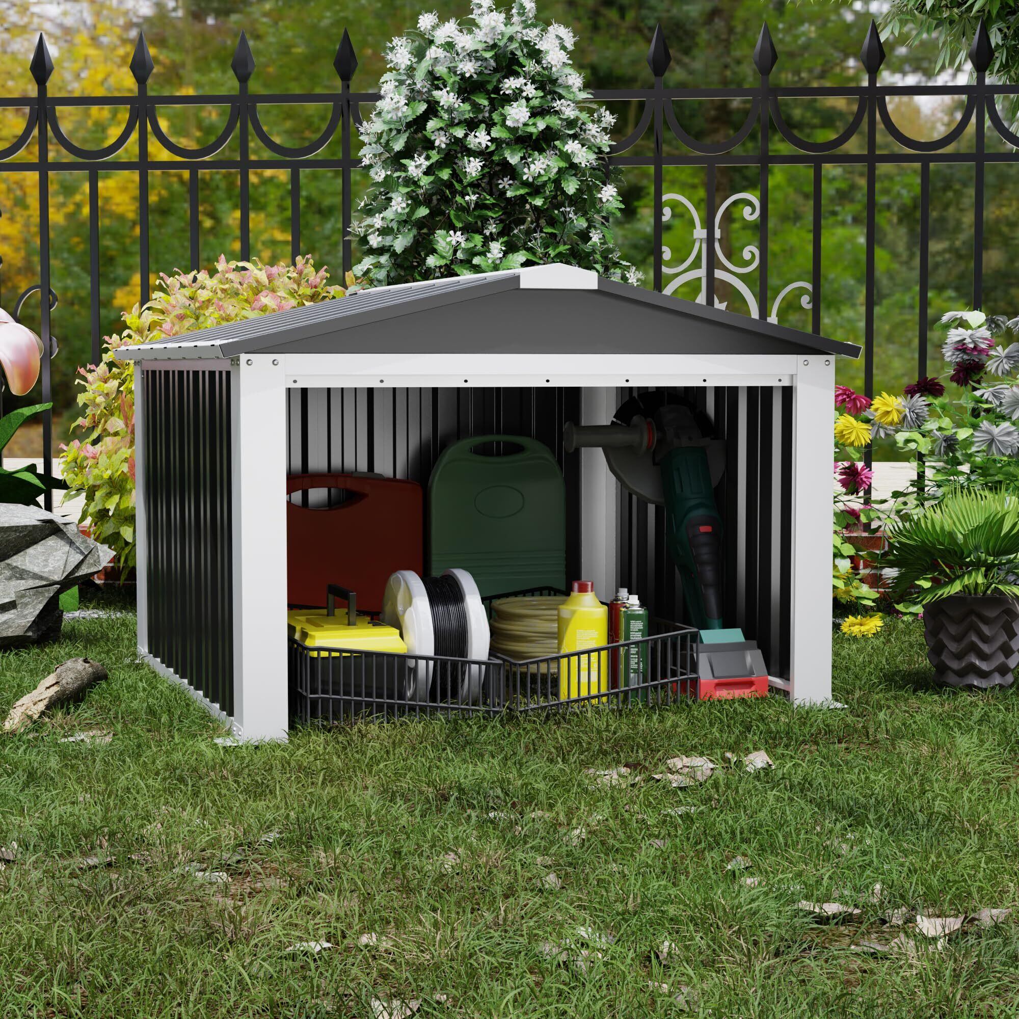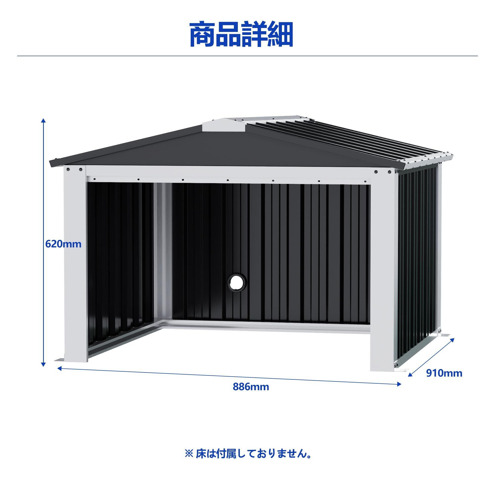 GangMei物置 室外収納庫 屋外亜鉛メッキスチール倉庫 幅88.6×奥行き91×高さ62cm 防水/耐侯/防UV 扉がない ガーデン/庭/犬屋用 ブラック
