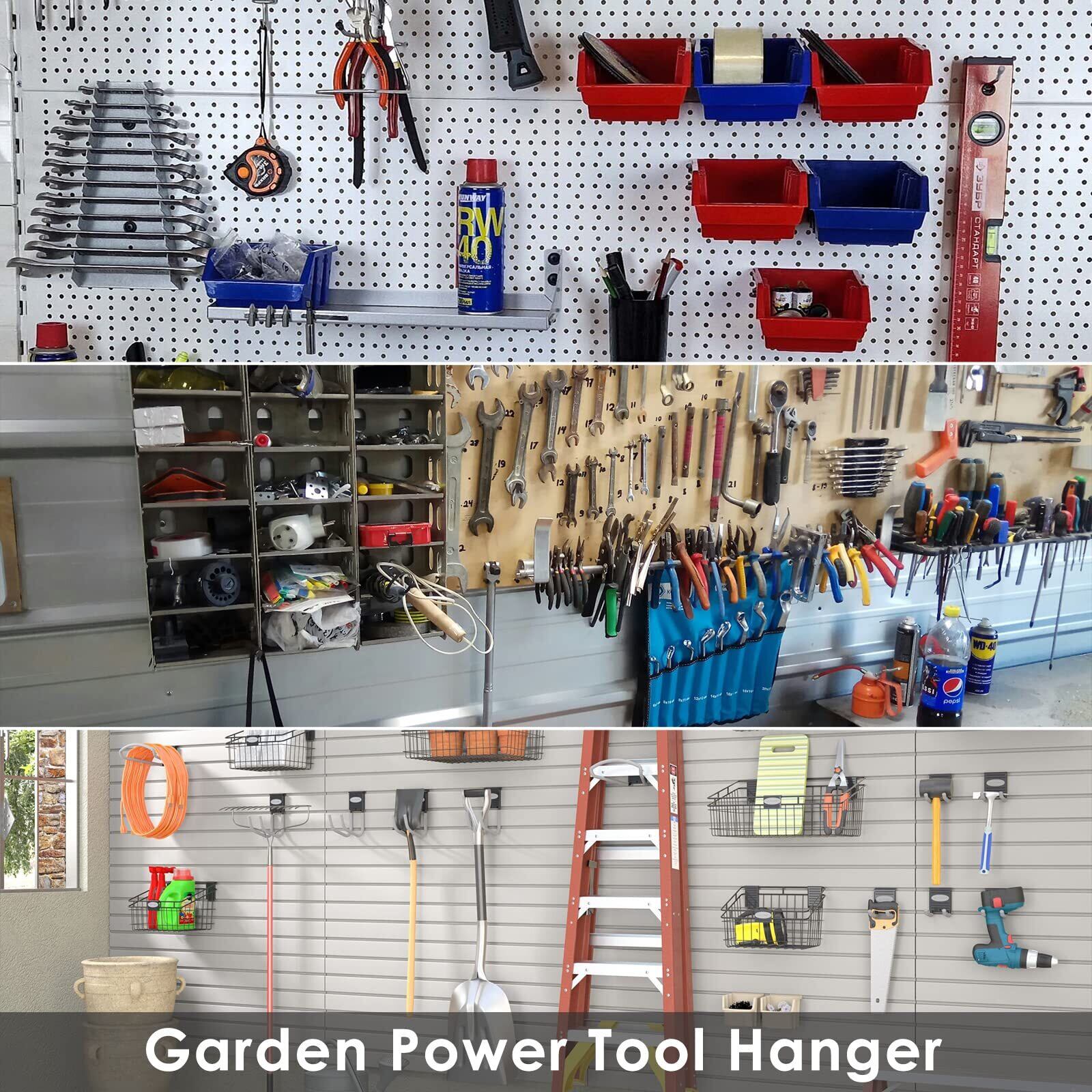 電動工具フックは、ガレージや庭のさまざまなガーデンツールや電動工具を支えることができます。 ウィードイーター、壁掛け式ウィードイーターハンガー、自転車ラック、リーフブロワーラック、ソーウォールハンガー、ほうきハンガーなどに最適なラックアタッチメント。