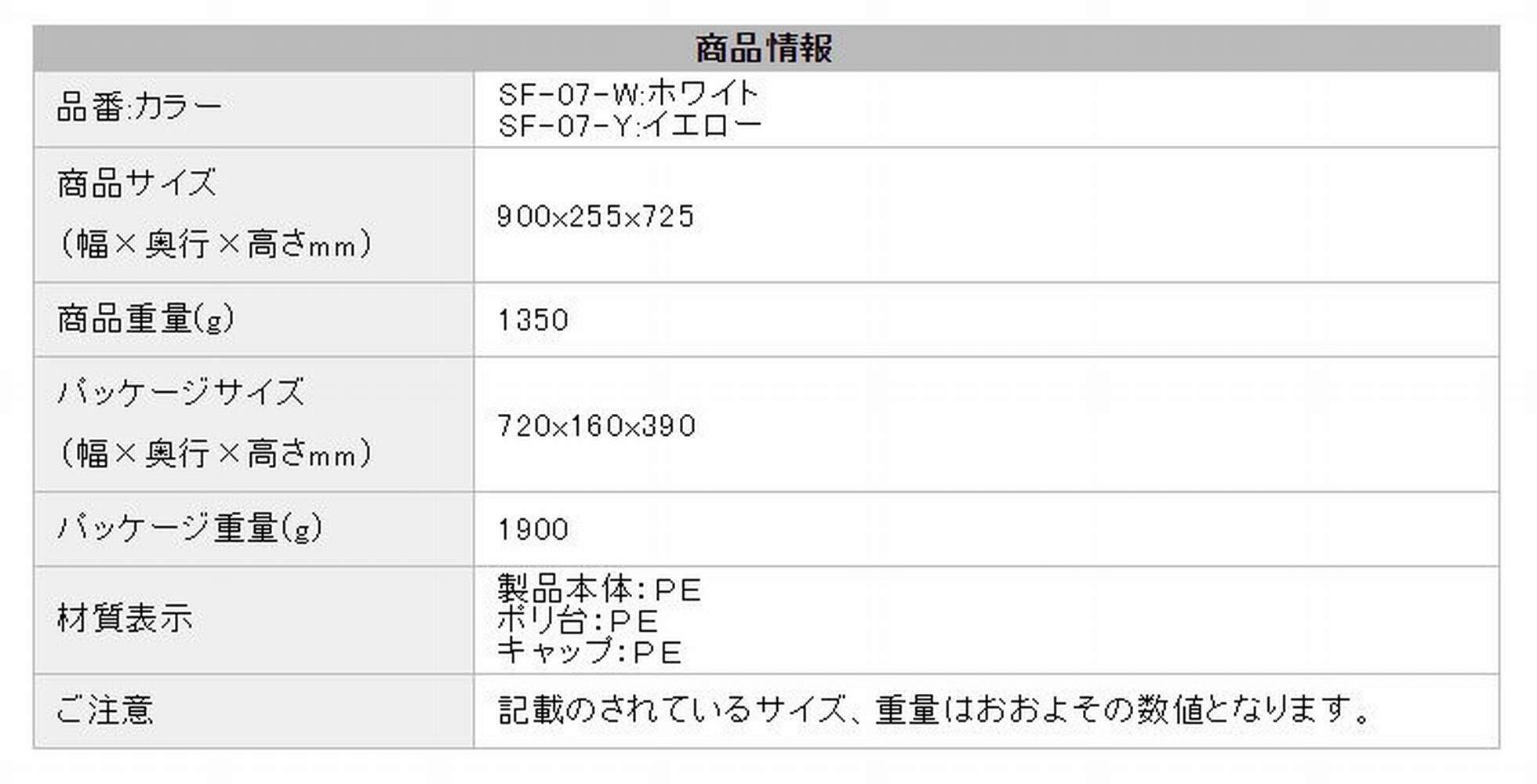 材質:PE(製品本体、ポリ台、キャップ)