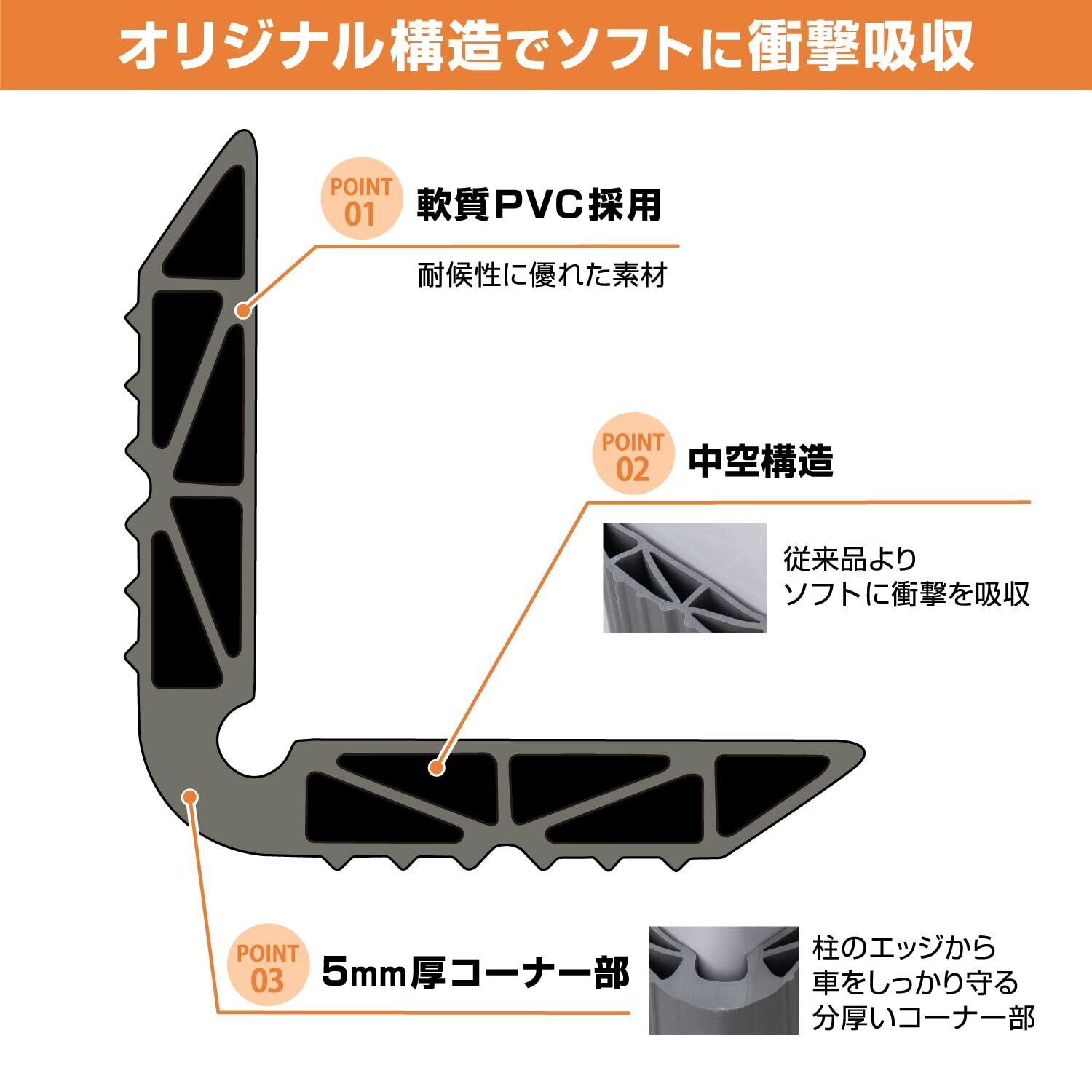 ◆ブロック塀やモルタルにもしっかり取り付けできる粗面用両面テープ付属◆オリジナル構造でソフトに衝撃吸収