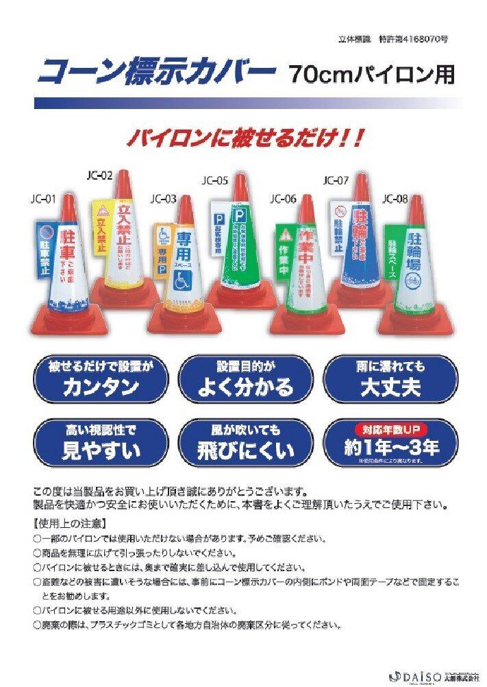 大創 コーン標示カバー70cm パイロン用 駐車禁止 JC-01