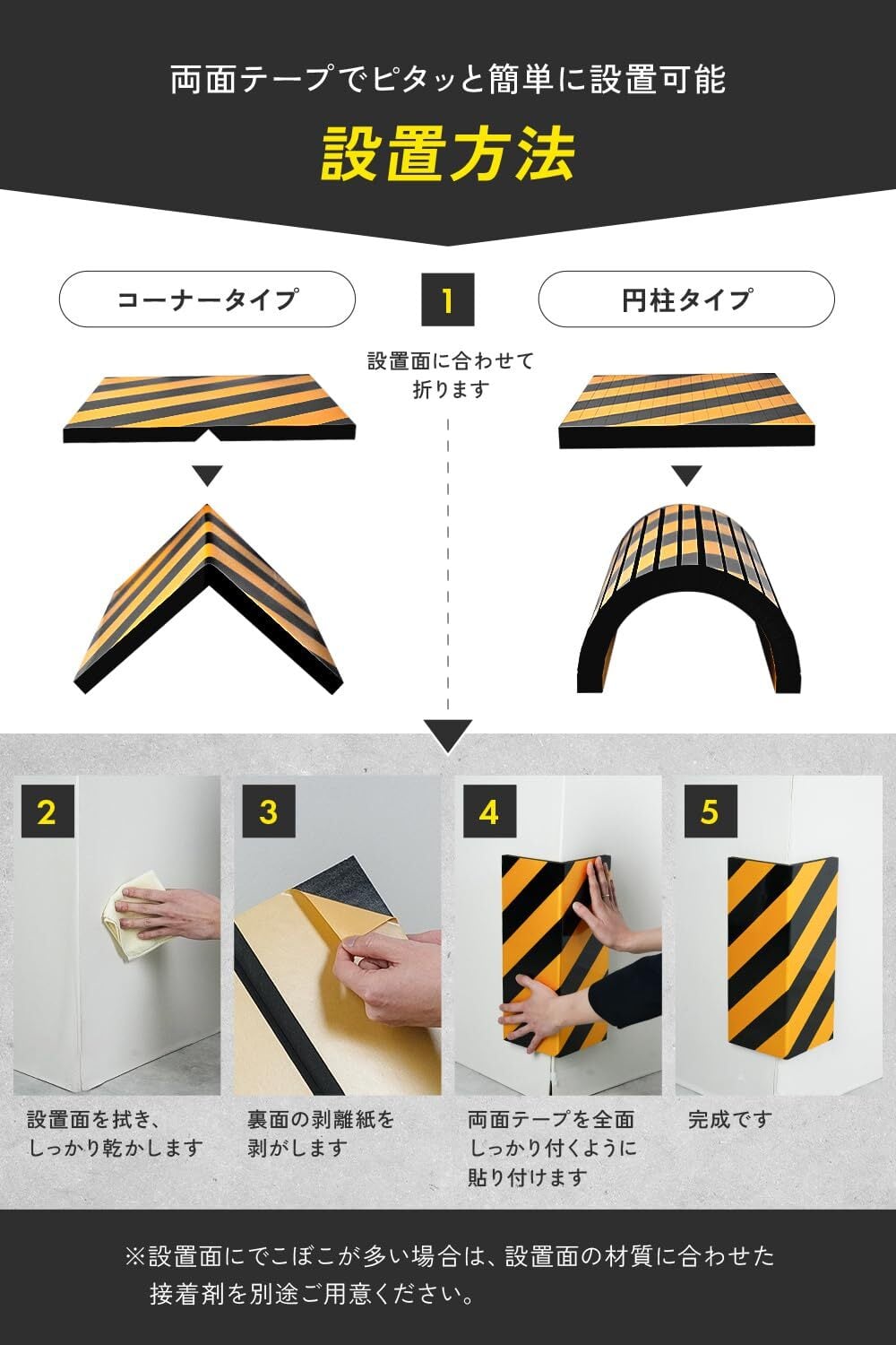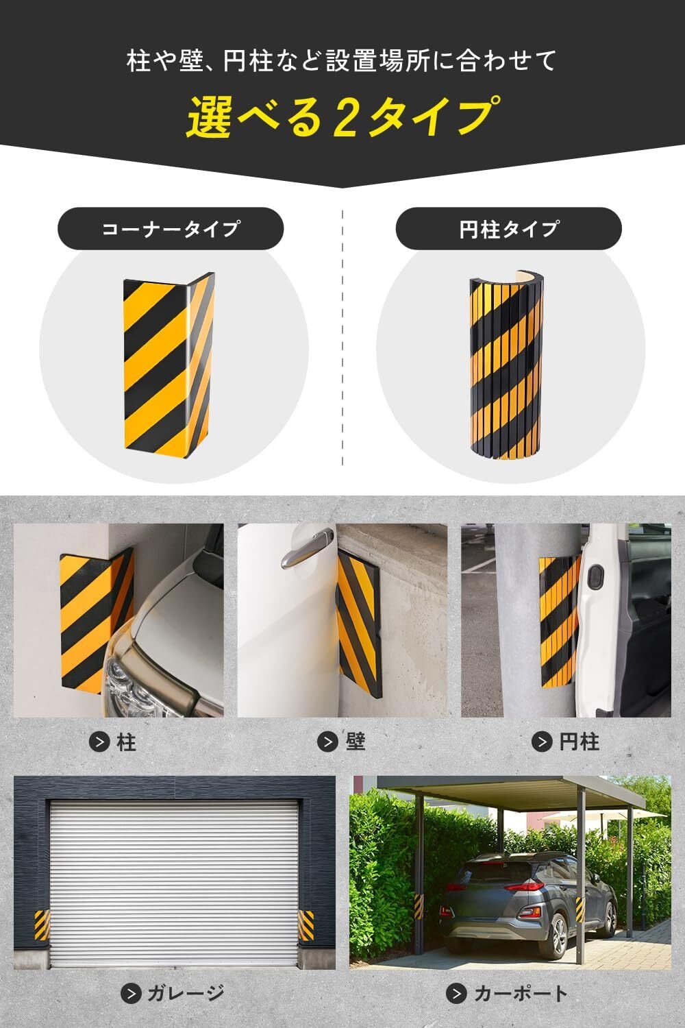 Webirth 駐車場 コーナーガード【柱が見やすく駐車を快適に!】駐車場 クッション 屋外 車庫 ガレージ 壁クッション (ブラック, コーナー用×4個)