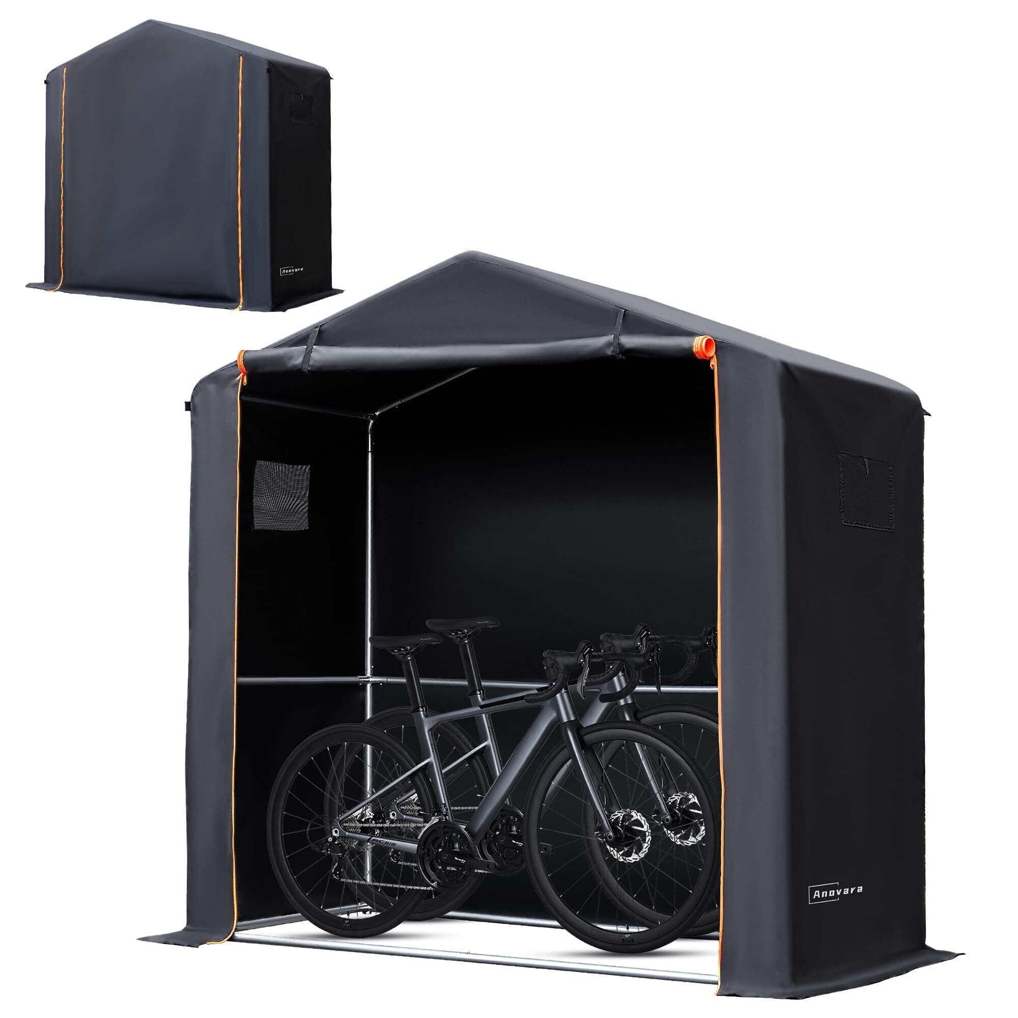 Anovara(アノヴァラ) サイクルハウス バイクガレージ サイクルポート 1台用〜2台用 自転車置き場 屋外 サイクルガレージ バイク ガレージ ガレージテント 自転車 テント 屋根 車庫 自転車小屋 バイク テント 大な正門 物置 屋外 耐水圧2000mm 防水防風防塵遮熱 (ブラック、ロゴ入り)