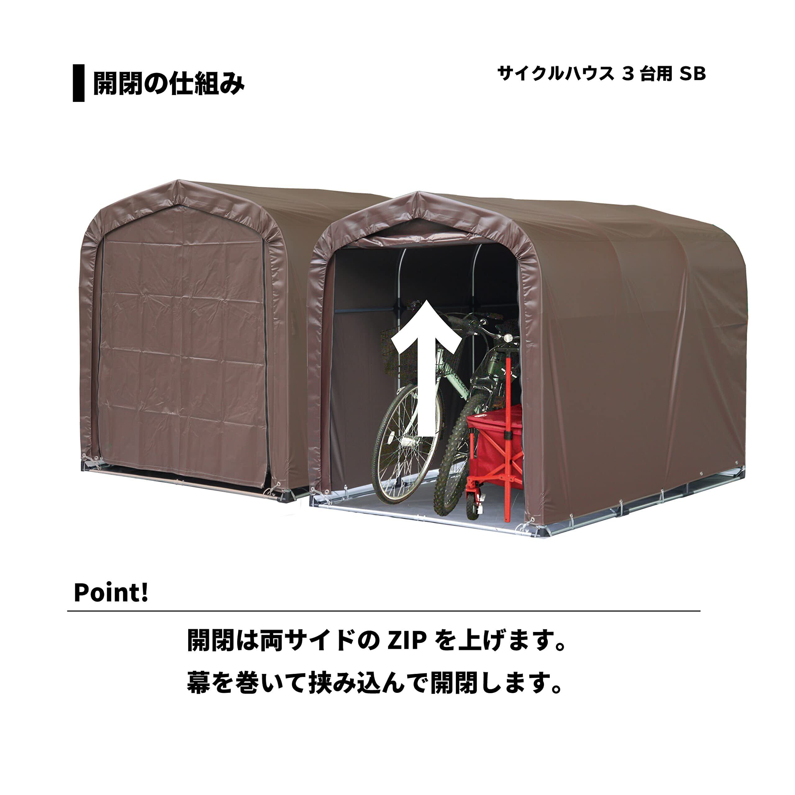 南榮工業(Nan-a Corporation) サイクルハウス 3台用SB 本体一式 間口 1.56m 奥行 2.2m 高さ 1.65m 自転車 電動自転車 アウトドア バイク バイク用品 園芸用品 テント 物置 耐水圧50,000mm 国産 日本産