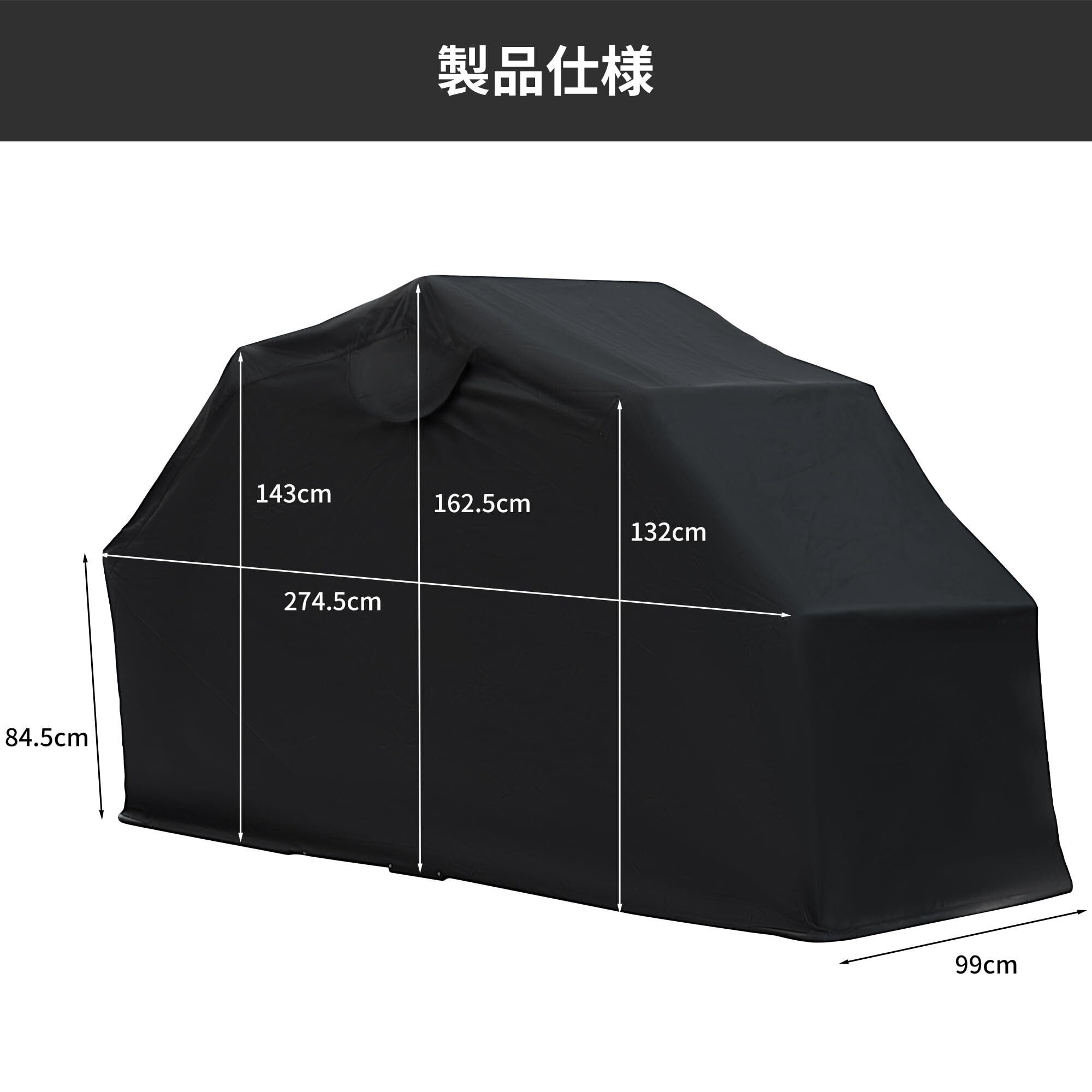 【製品仕様】サイズ:幅274×奥行99×高さ163cm 中型バイク1台、あるいは自転車2台向け。*本商品はメーカー一年付き、万が一、初期不良や非外力による破損がありましたら、出品者にご連絡ください。