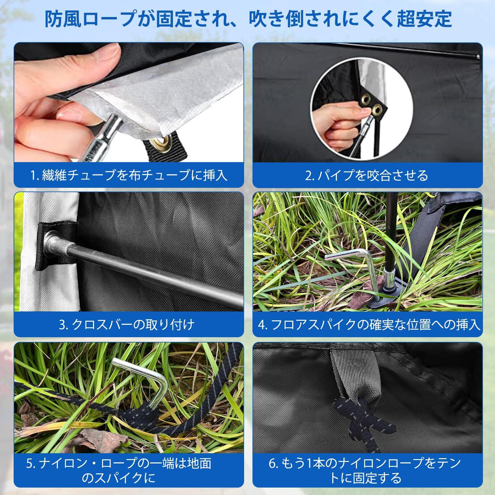 【簡単組立&ぼうふうロープ】一人でも取り付けと取り外しが簡単で、テント全体を組み立てるのに8分もかかりません。道具は必要ありません。普通のテントのように、設置プロセスは迅速で簡単です。小さく折りたたむことができ、軽くコンパクトで携帯性に優れています。自転車収納ドアの上部と底部のファスナーはドアを完全に閉鎖し、全面的な防水、防塵虫保護を提供することができ、屋外で使用して防風性を高めるため、自転車テントの上部に防風ロープのバンドルポイントを設計し、4本の防風ロープと地釘を配置し、強風があっても倒れにくく、自走車小屋をより強固に保護した。
