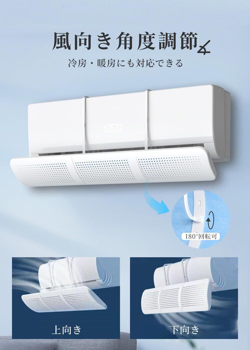 【风向き調節・風量調節&節電】エアコン風よけカバーは上下に180°風向きを調整でき、夏に冷たい空気を上げて冬に温かい空気を下げて空気循環を効率的に促進し、省エネで省電力!風向きを自由にコントロール可能で、最適な風向き角度をくれます。寝るときも仕事中も安心です。