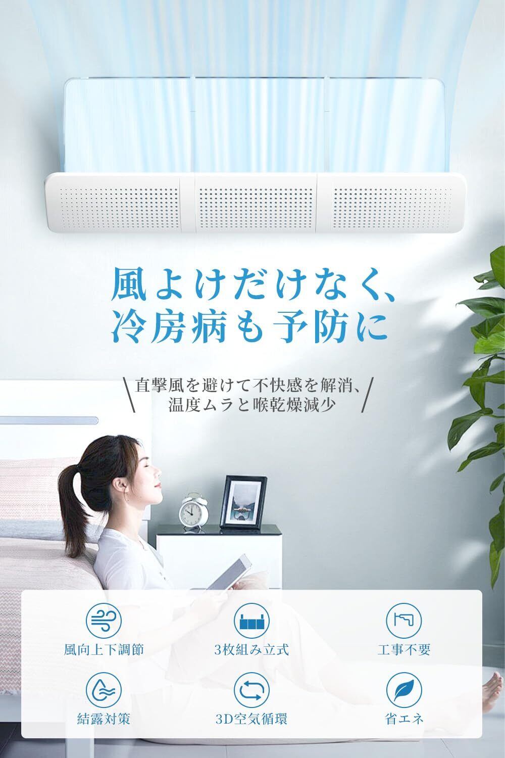エアコン風よけカバー 直撃風防止 上下180°風向き調整 革新的3枚式 風除け 壁掛け式 循環送風 冷房暖房通用 カバー 結露防止 節電 取り付け簡単 穴あけ不要 落下防止 直撃風対策 オフィス 家庭用 業務用 室内快適グッズ (ホワイト)