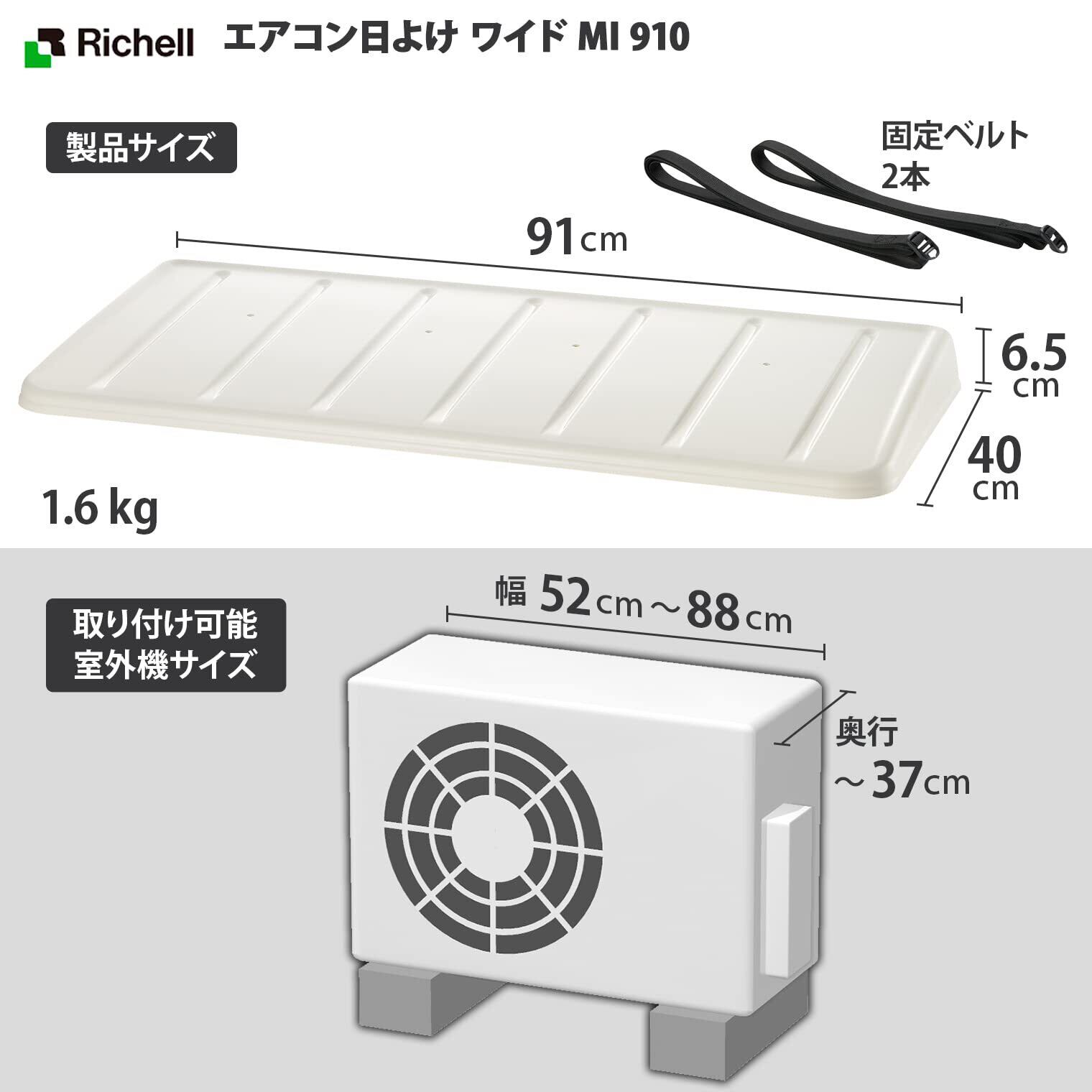 リッチェル エアコン 室外機 日よけ カバー ワイド MI 910 日本製 パネル ひも付き ベルト 固定 遮熱 断熱 省エネ 節電 エコ 簡単 設置 クーラー 400053