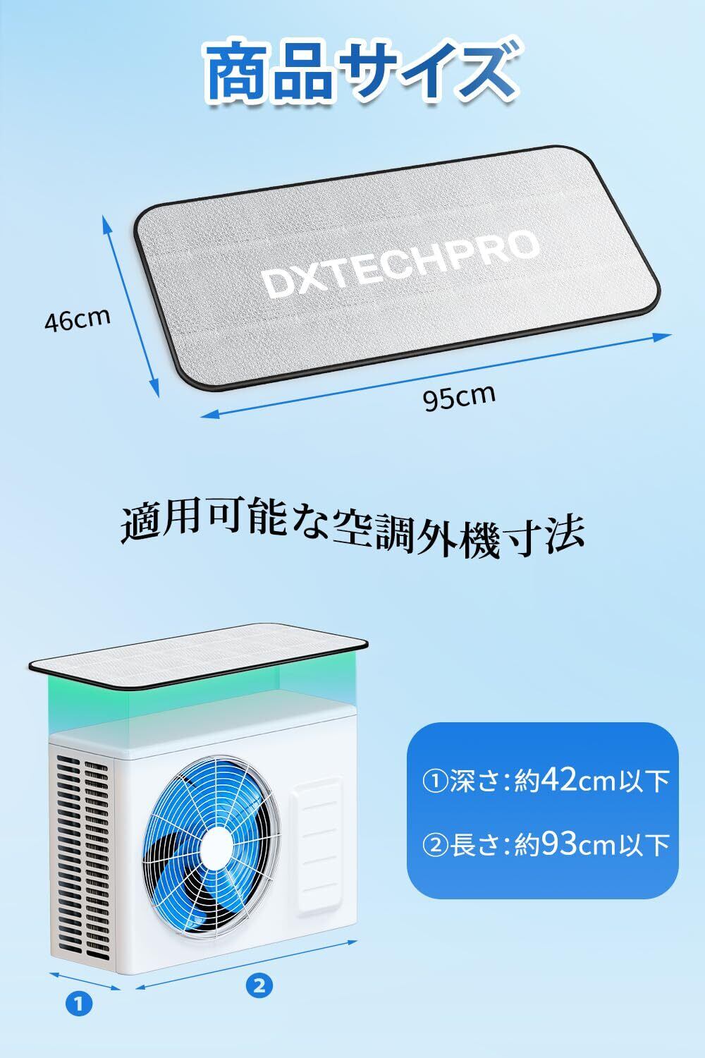 DXTECHPRO【省エネ版】エアコン室外機カバー 1枚セット簡単脱着 室外機日除け 省エネ エアコンしつがいき 室外機シール アルミ製 防雨 UVカット95X46cm 3層構造(シルバー)