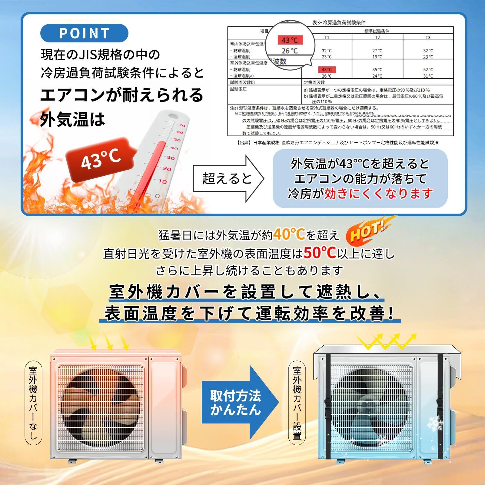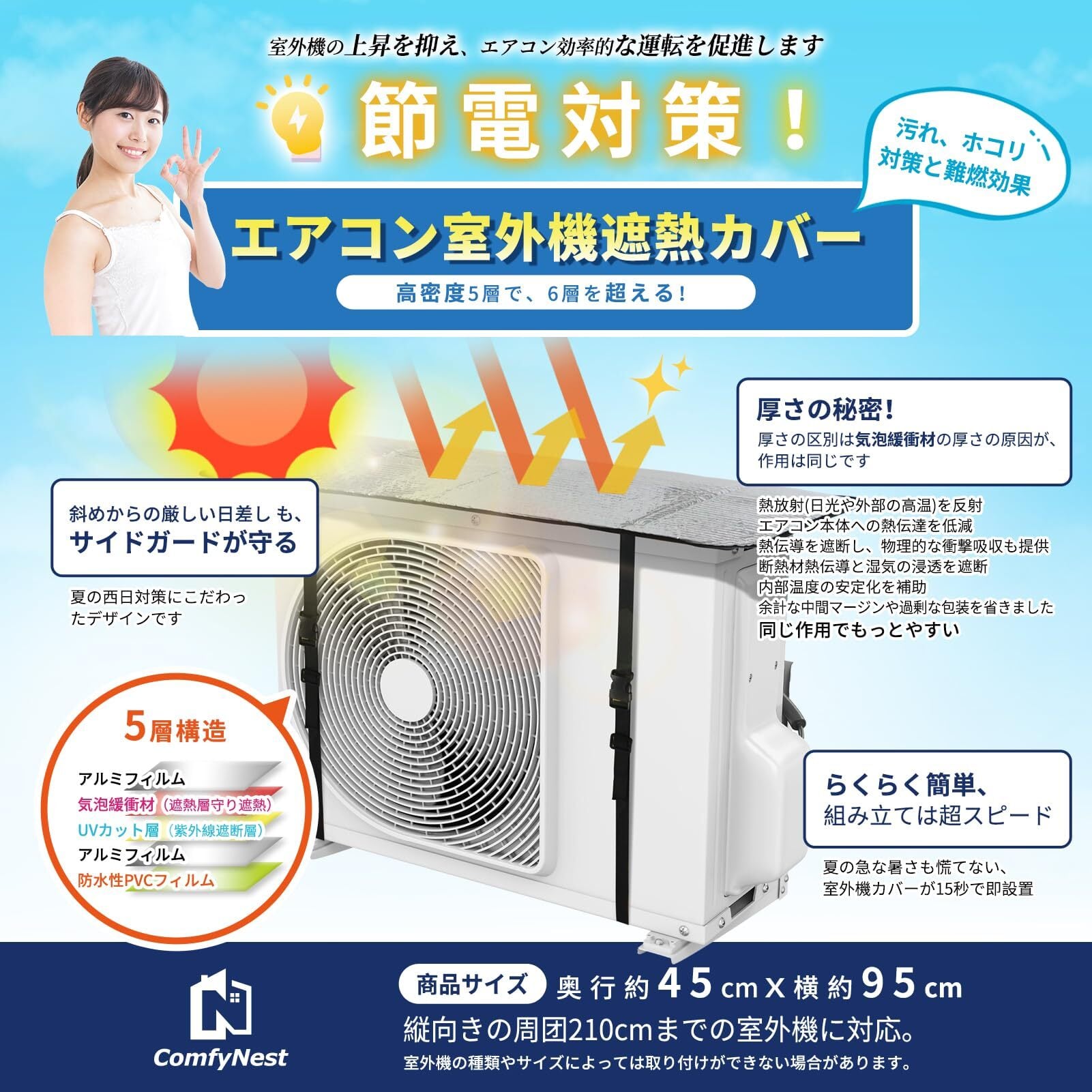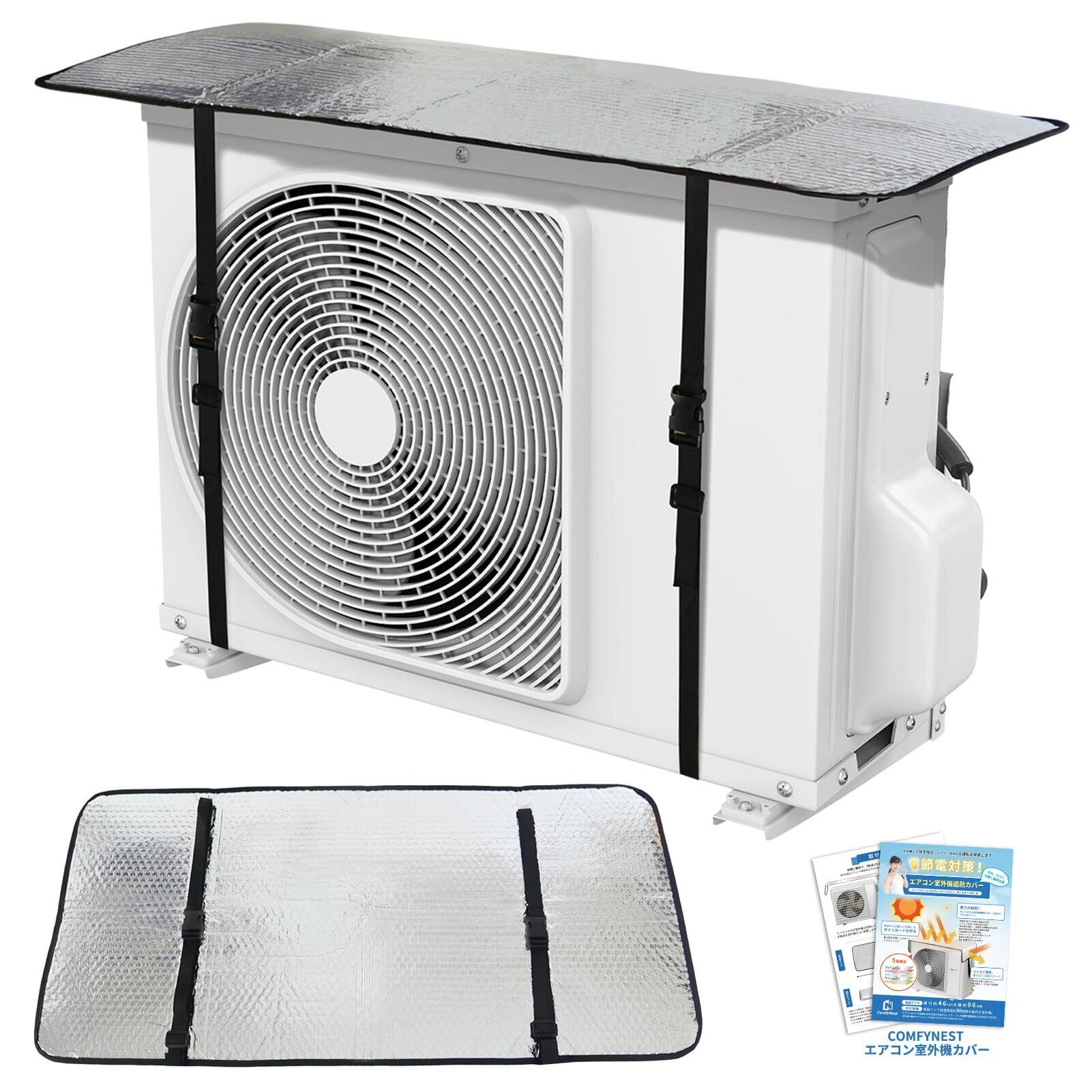 Comfynest 室外機カバー エアコン室外機カバー 日除け 遮熱シート ベルト固定タイプ 多様タイプ 95×45cm エアコンシツガイキカバー 室外機保護カバー 節電 遮熱 遮熱保護 取り付け簡単 省エネ | KSショップ