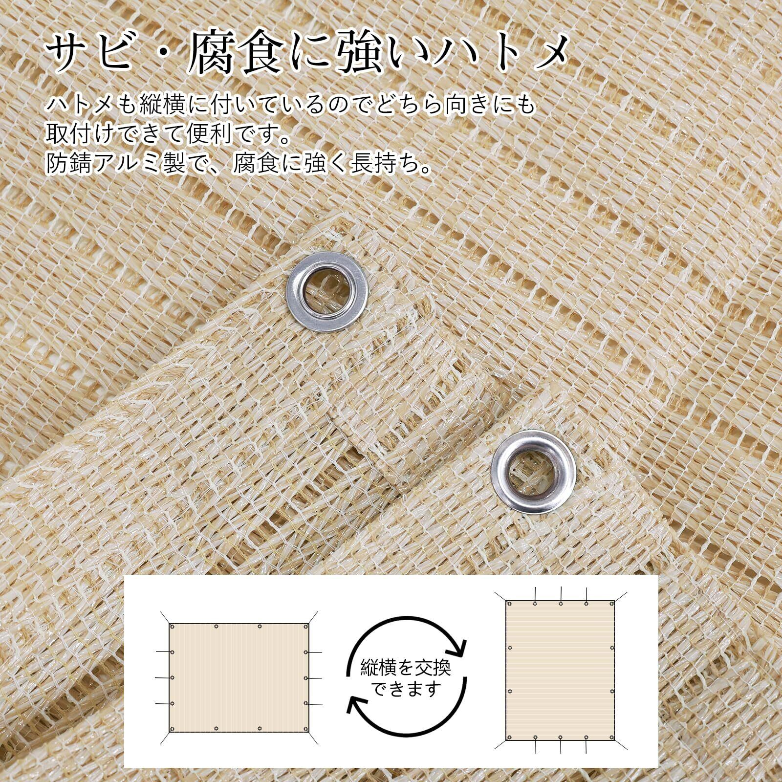 取り付け:上下に各5個、左右に各2個、合計14箇所あるハトメはアルミ製で錆びにくく、濡れても安心です。取付けひも1.5mx6本 入、ベランダや窓ペ、廊下、庭下、庭先、玄関などに簡単に取り付けることができます。お洒落なデザインなので、日よけだけでなく、ご自宅やお庭のエクステリアとしてもご利用なれます。