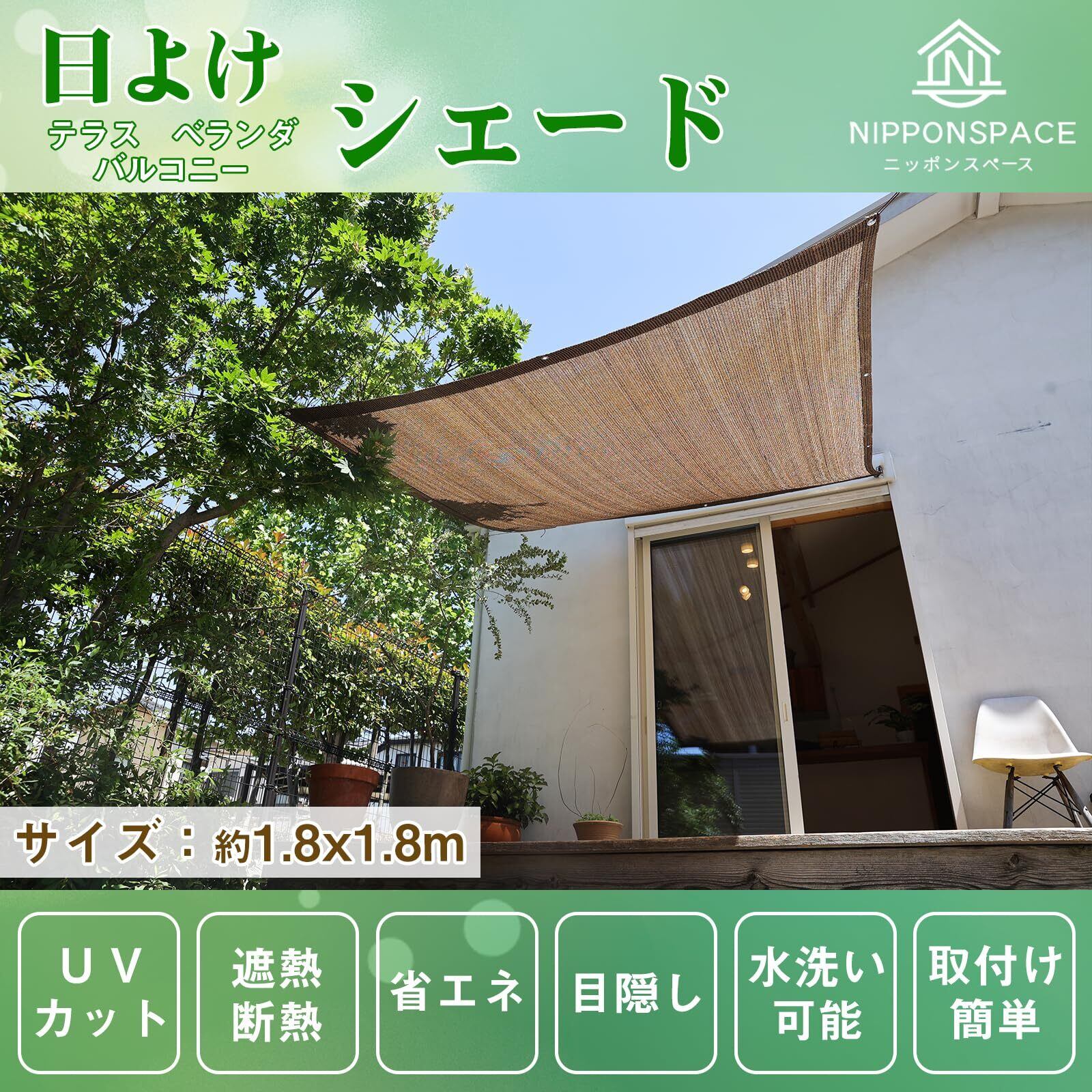 NIPPONSPACE 日除け シェード サンシェード ベランダ クールシェード 日よけ バルコニーシェード オーニング 遮熱断熱 高密度ポリエチレン 日差し防ぎ UVカット 紫外線対策 目隠し 通気性 アルミ製ハトメ 錆びにくい 紐付け 取り付け簡単 (1.8m×1.8m, モカ) | KSショップ